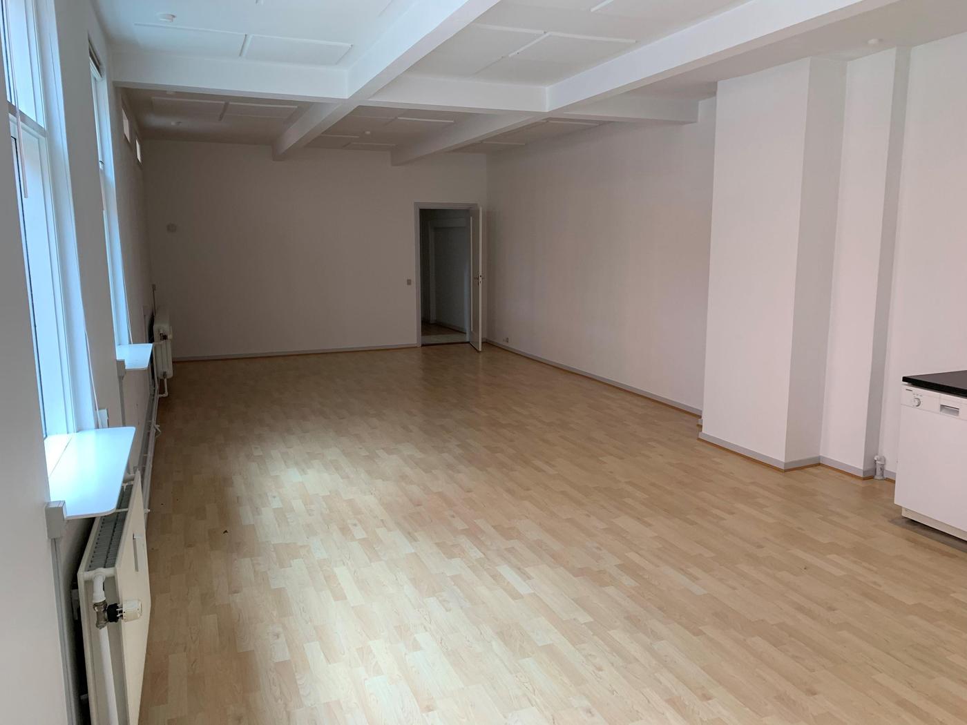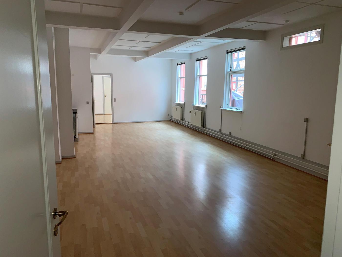 Lejemålet andrager ca. 120 m² og er indrettet med forkontor/reception med toilet, større åbent kontormiljø/undervisningslokale, som evt. kan opdeles yderligere, samt et ekstra kontor. Der er adgang til lejemålet via egen indgang og trappeopgang.