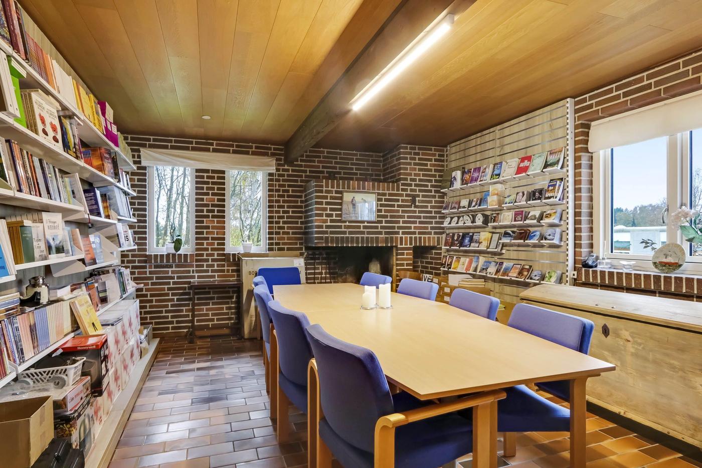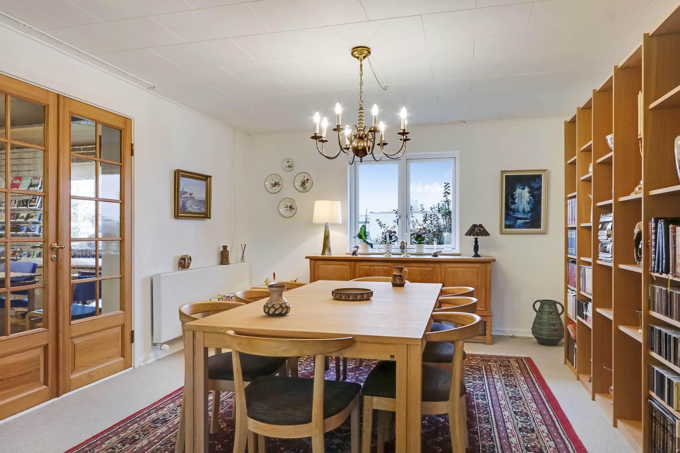 Herudover er beboelsen indrettet med entre med trappe til 1. sal, bryggers, badeværelse, værelse, stor vinkelstue med udgang til terrasse samt stort køkken med spiseplads og udgang til terrasse. Fra stuen er der adgang til mødelokalerne. På 1. sal findes endvidere repos, stort badeværelse med kar og bruseniche, depotrum samt 3 store værelser.