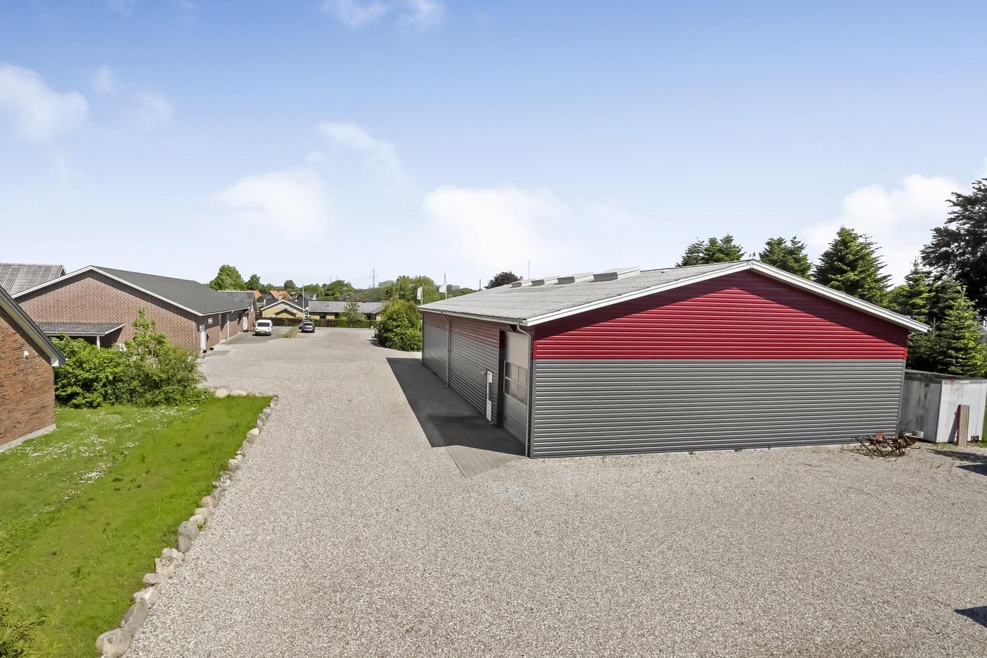 Ejendommen består af en højloftet isoleret lagerhal med mandskabsafsnit samt nydelig privatbeboelse med dobbelt garage og fyrrum.