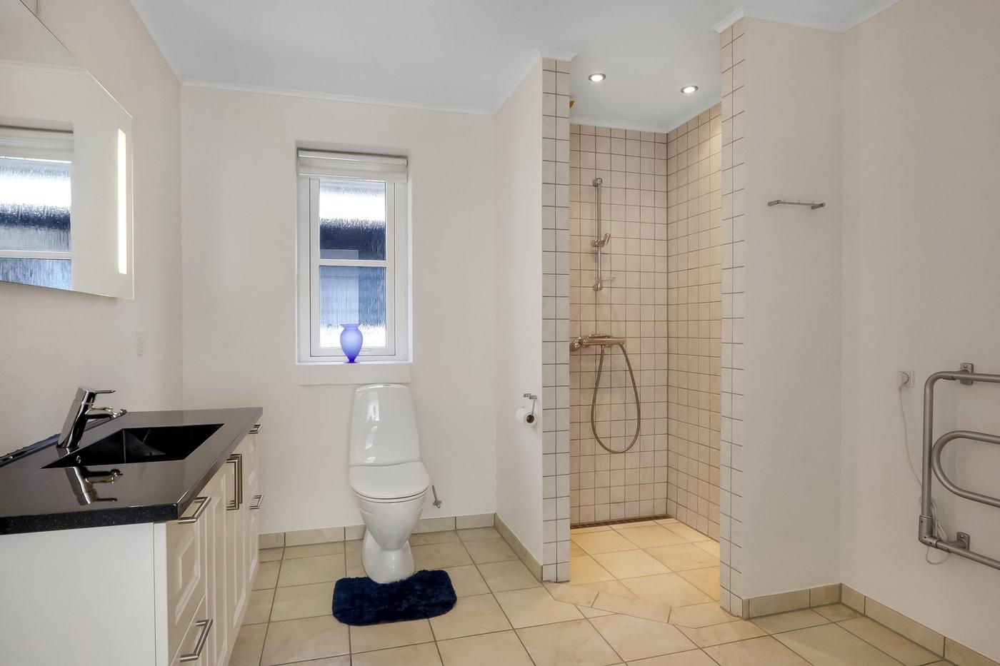 Ved privatbeboelsen er gangarealerne omkring bygning og terrasse belagt med fliser.
