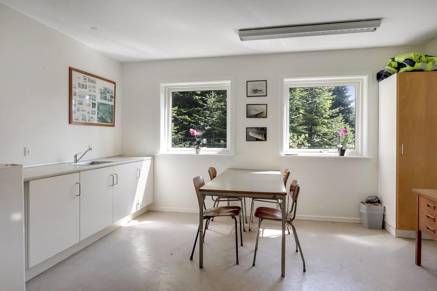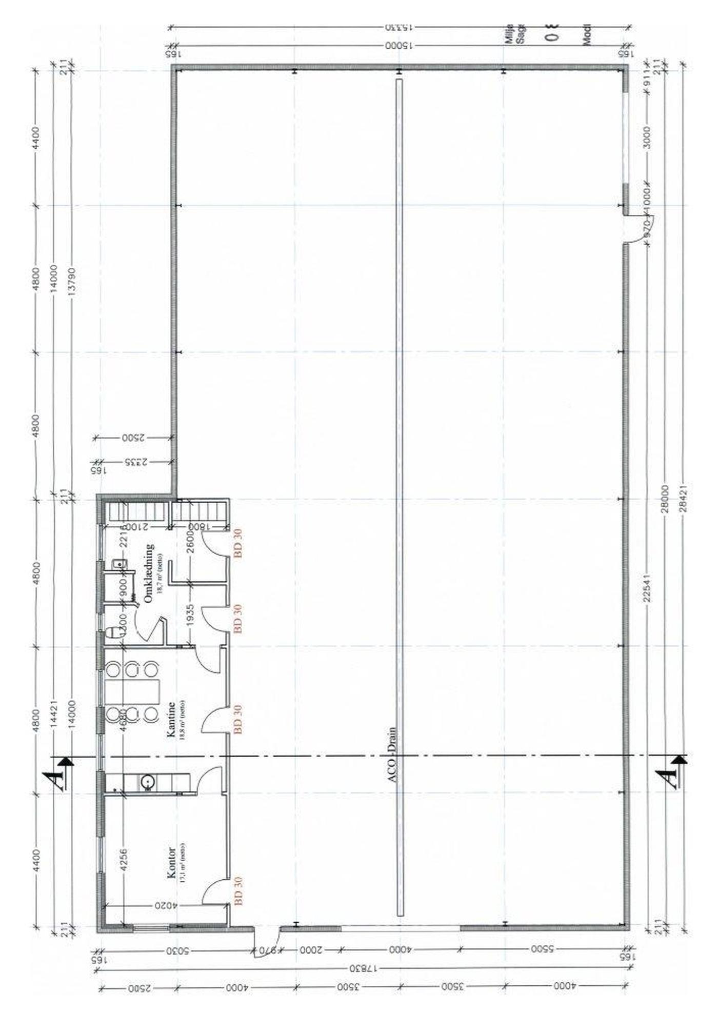 Der er en god portdækning med porte i gavl og i vestvendt side af bygningen. Porten i gavlen måler ca. 4x5,5 meter og i siden 3x4 meter. Der er mandskabsafsnit med omklædningsrum med bad og toilet, fyrrum, frokoststue og kontor.