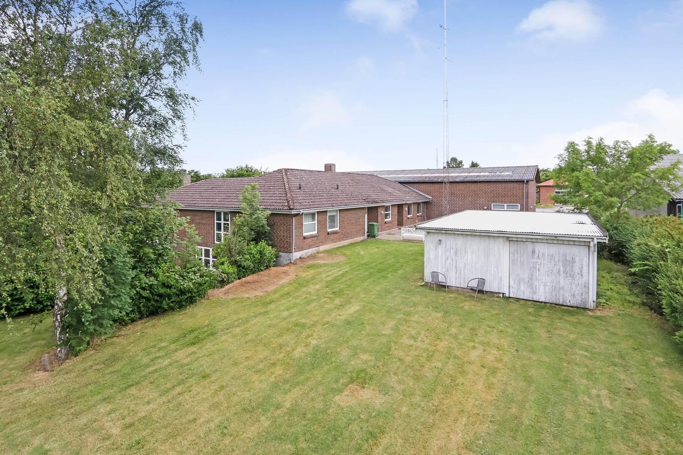 Erhvervsdelen består af en isoleret lagerhal, et solidt værksteds-/garageanlæg og rummelig beboelse beliggende på 2 store grunde.