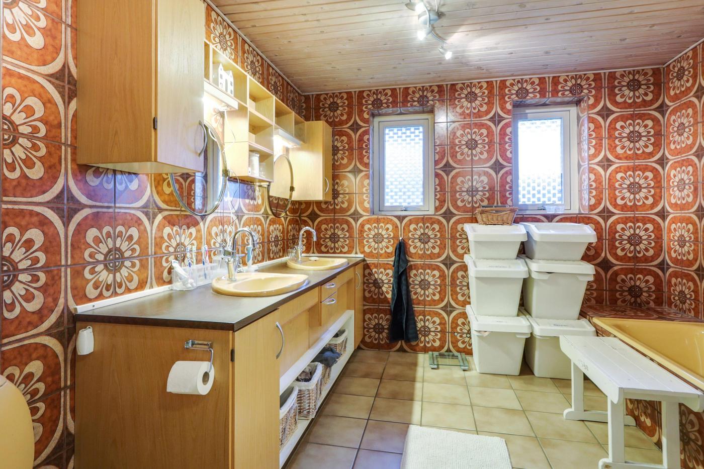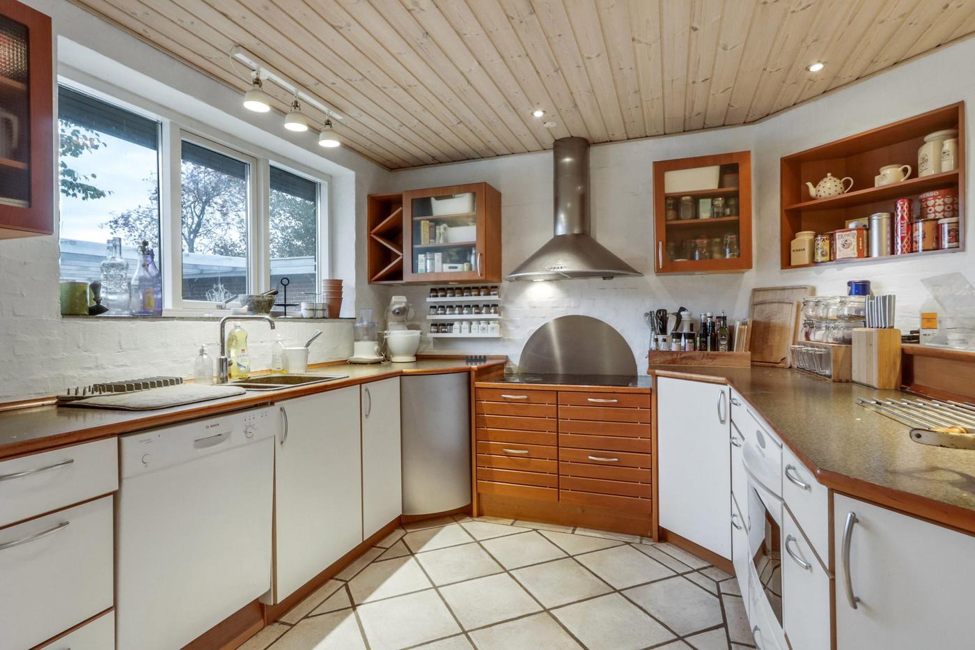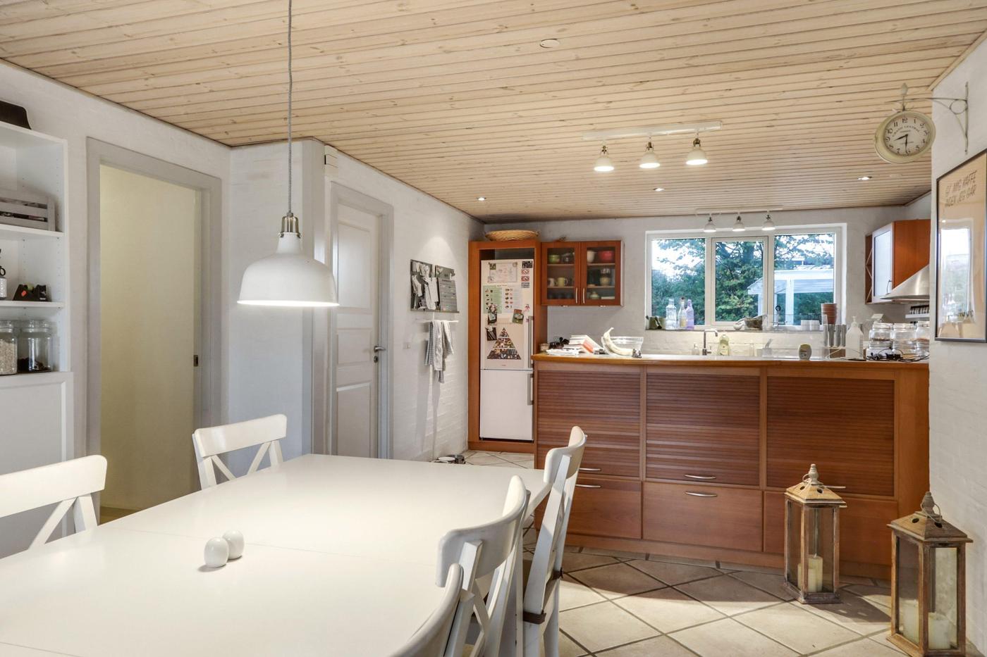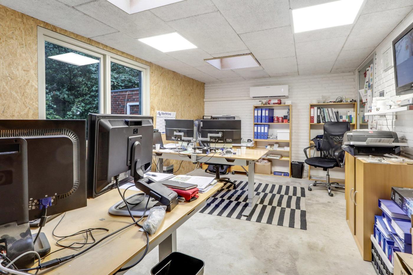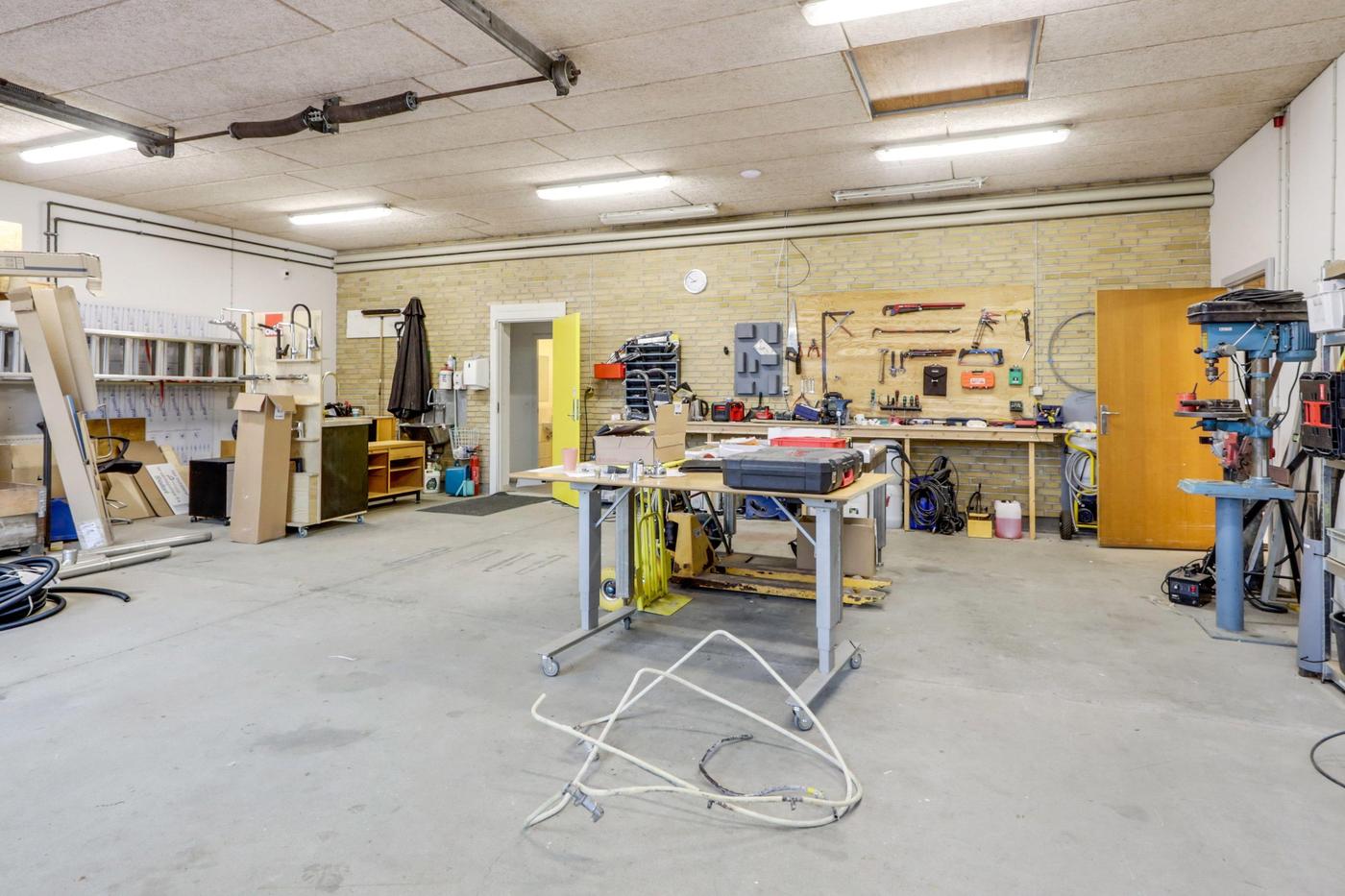Bagtil er der tilbygget afsnit med frokoststue, toilet, baderum samt kontor med 2 arbejdspladser.