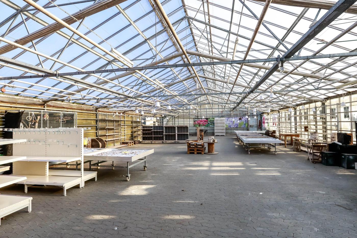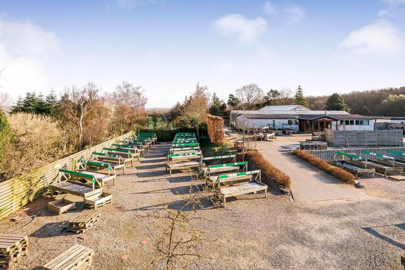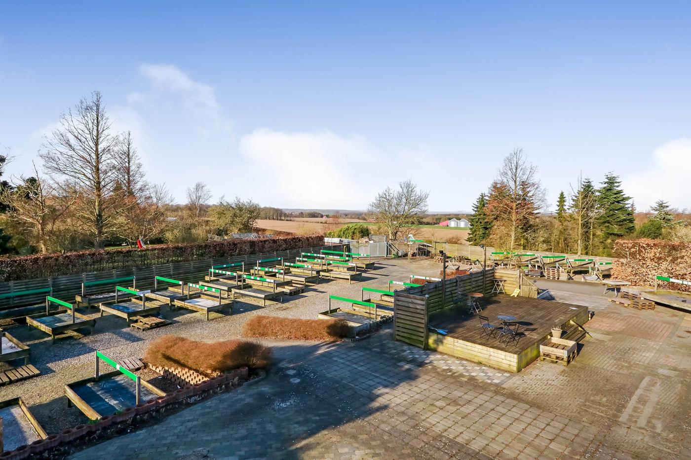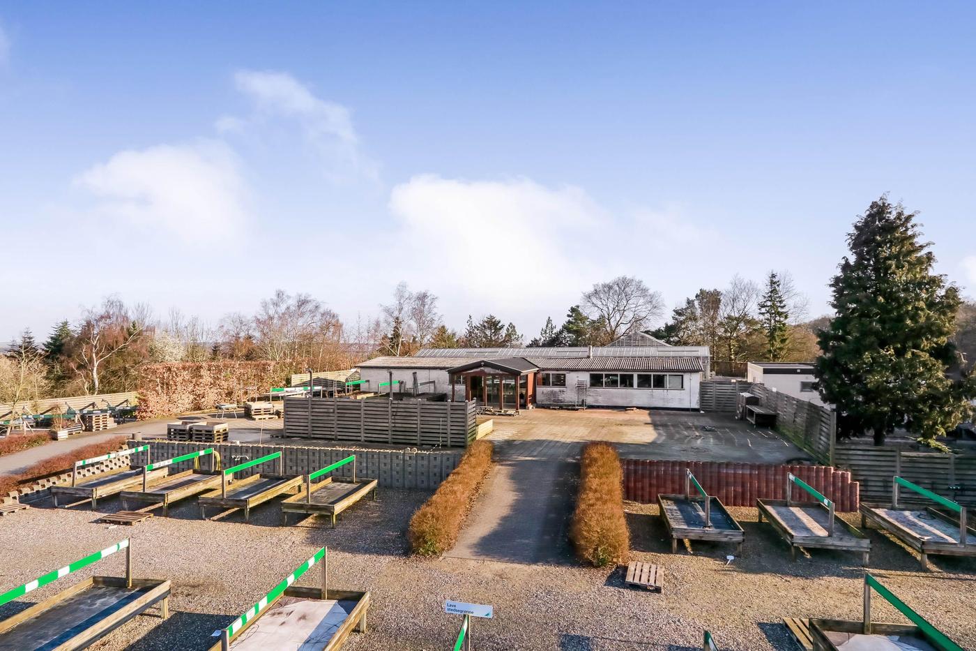 Fra såvel drivhus som driftsbygning er der udgang til udendørs salgsarealer, hvor en del af arealerne er flisebelagte.