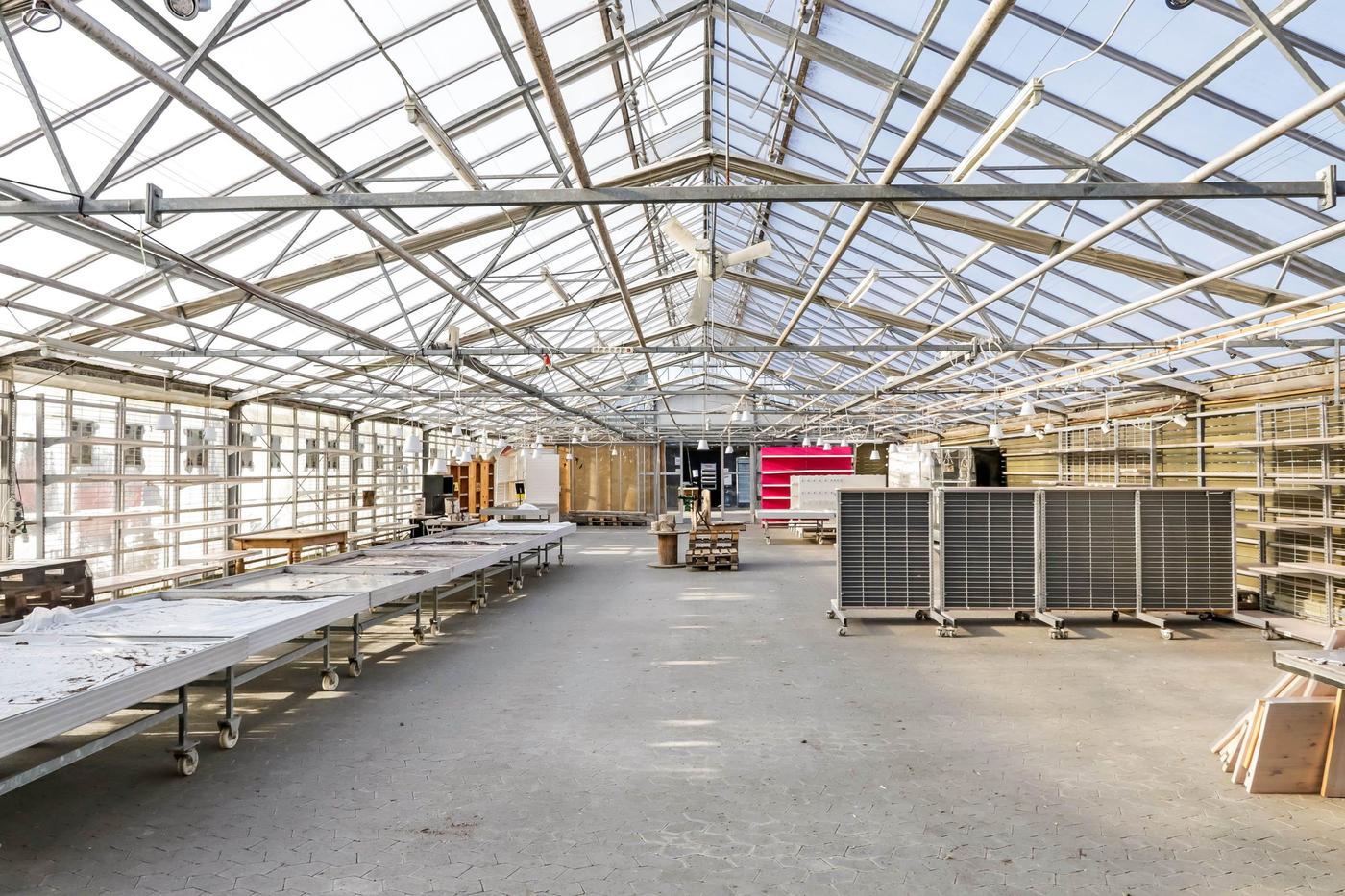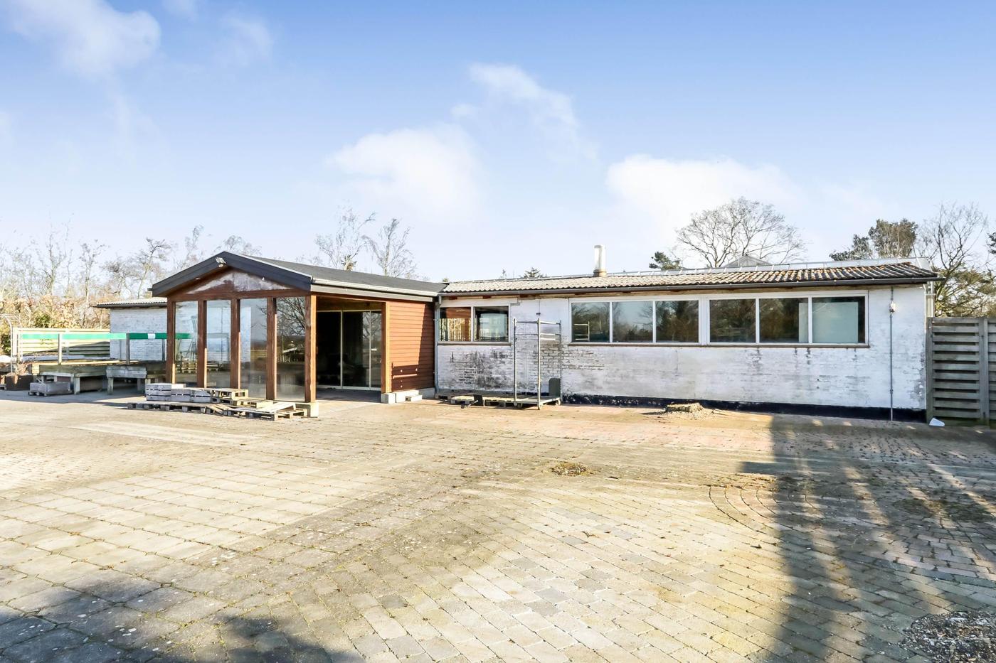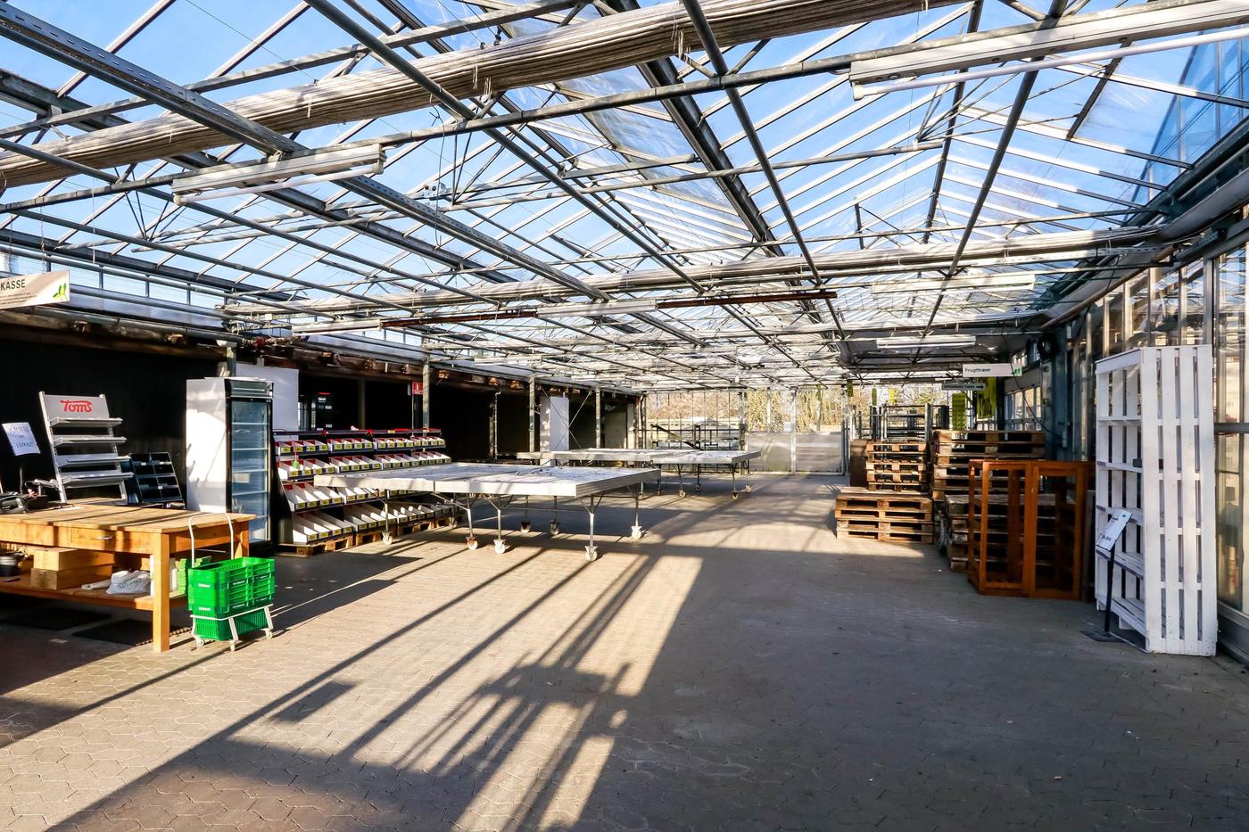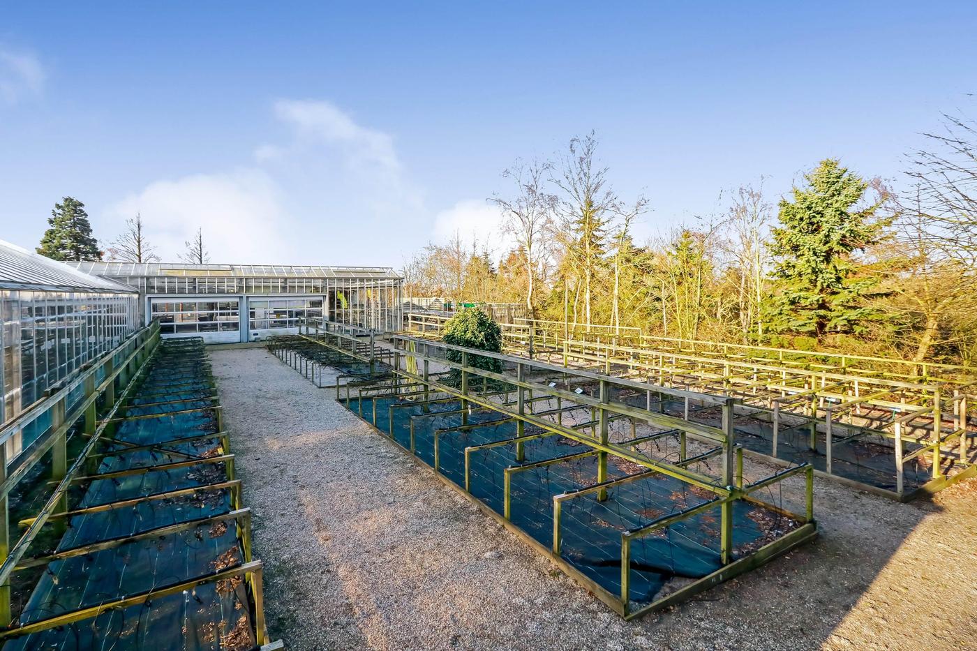 Fra såvel drivhus som driftsbygning er der udgang til udendørs salgsarealer, hvor en del af arealerne er flisebelagte.
