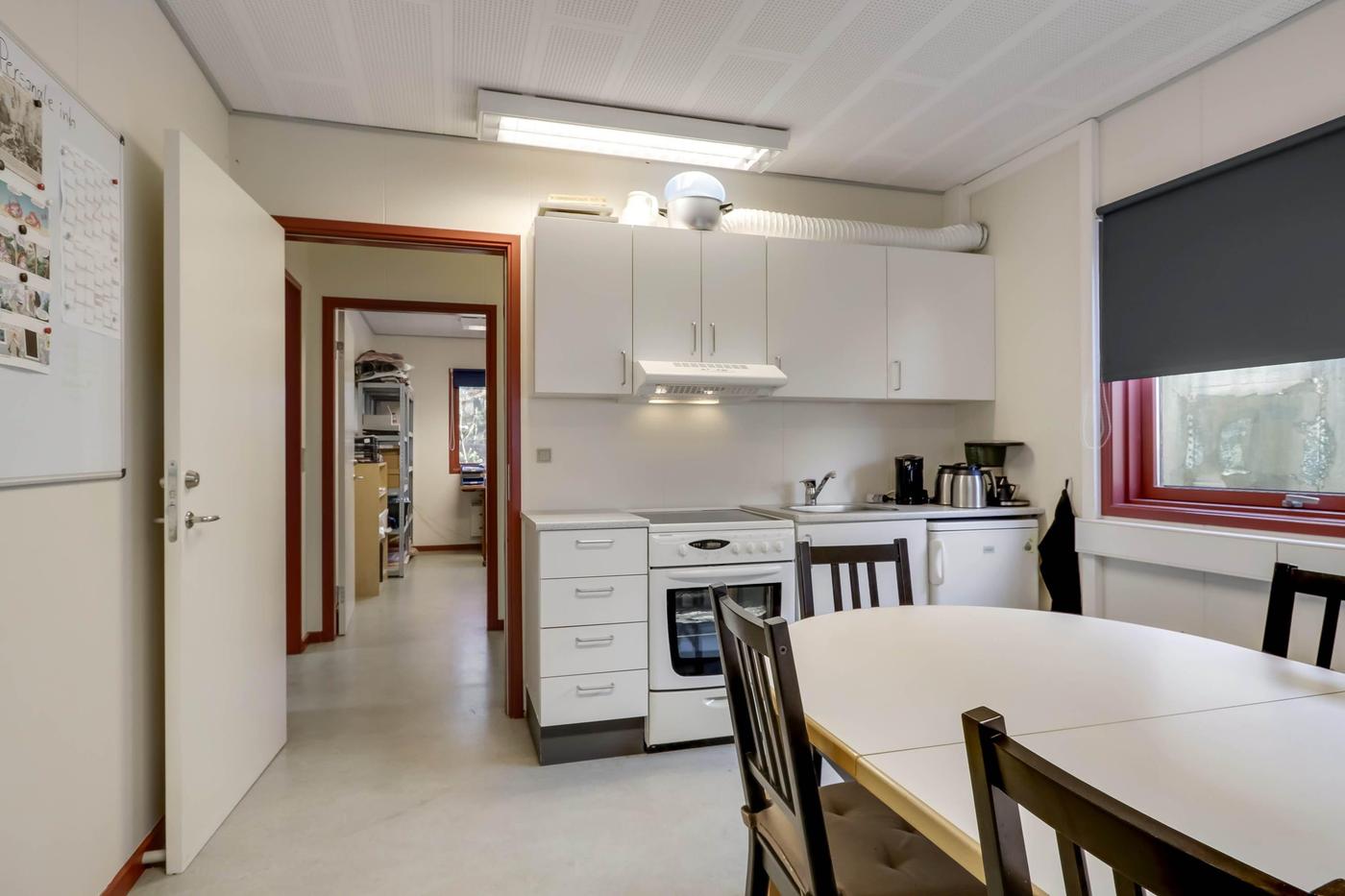 Foran drivhusene er der opstillet pavillon med 2 kontorer, frokoststue samt kunde-/handicaptoilet. Pavillonen er i let konstruktion med fladt tag pålagt tagpap.