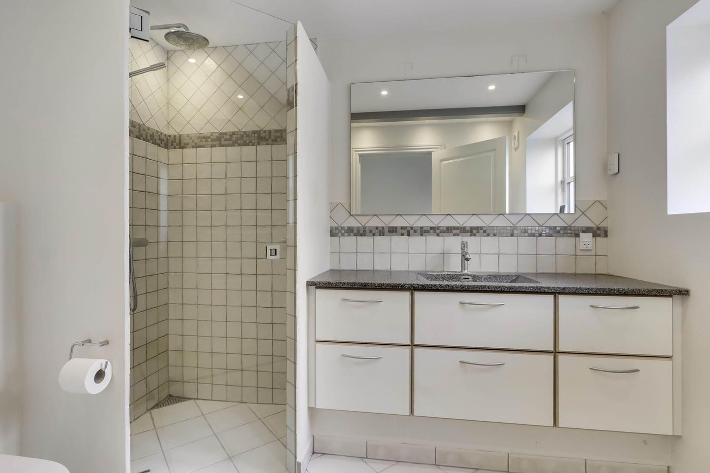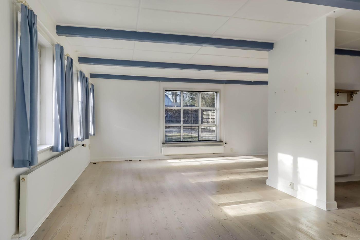 Herudover findes hyggelig privatbeboelse. Privatbeboelsen er opført med pudsede facader og stråtag. Bygningen er udnyttet i stueplan og indeholder entre, vinkelstue med åbent køkken, baggang og badeværelse med brus, fordelergang samt 3 værelser. Fra gangen er der opgang til uudnyttet loftsrum.