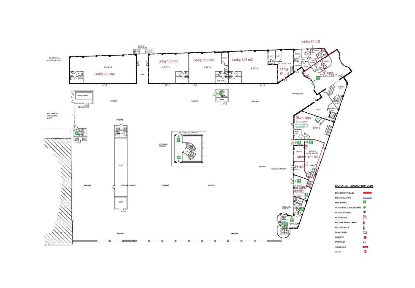 På 1. sal med direkte adgang til centrets store parkeringsareal findes flere lejemål, som kan anvendes til forskellige formål.