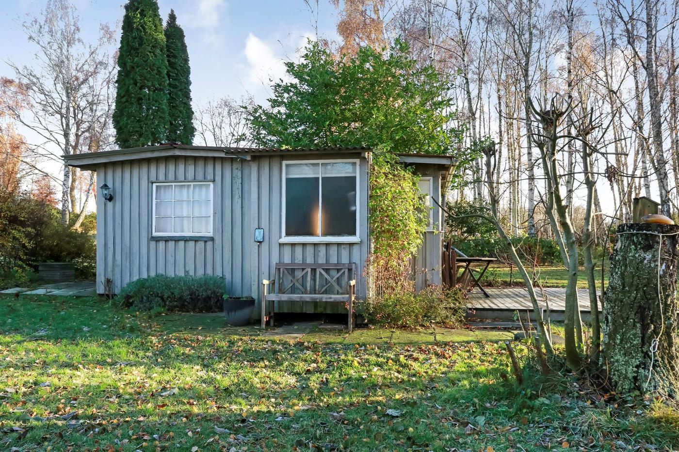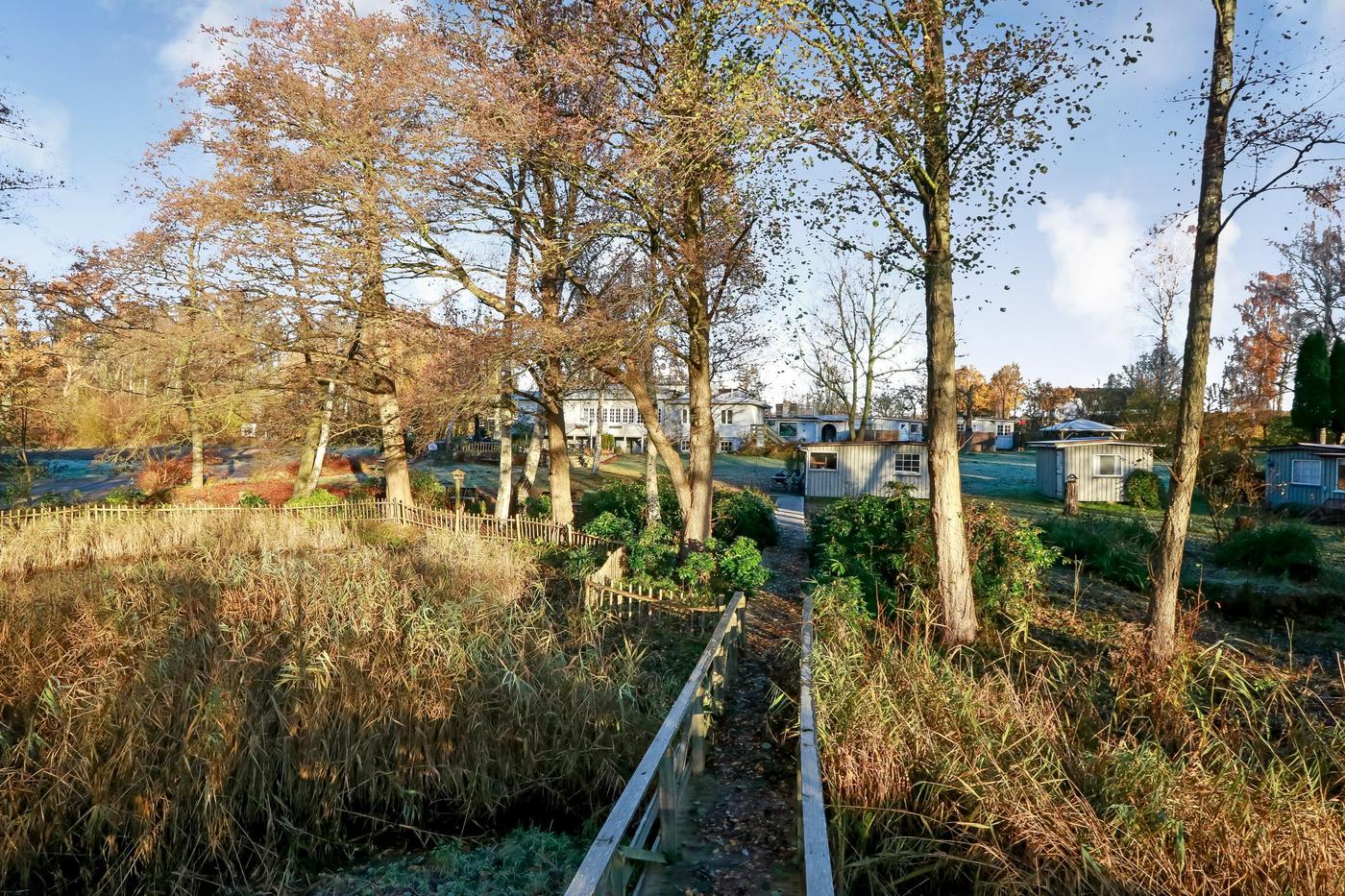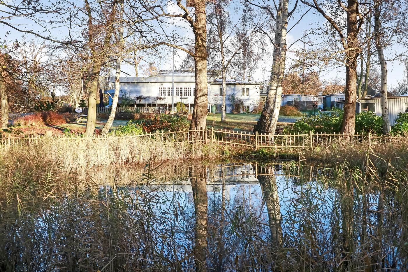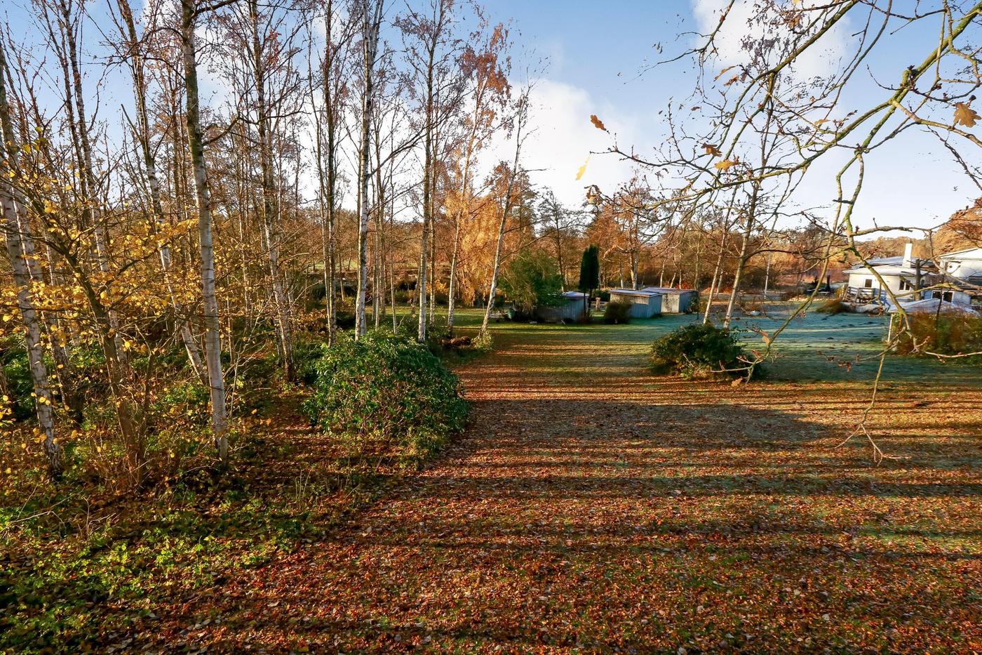 En køber vil også få stor glæde af den 10.000 m² store naturgrund, hvorpå der bl.a. findes 5 hytter til udlejning, en lille sø med gangbro til areal hvor der tidligere har været anlagt en minigolfbane.