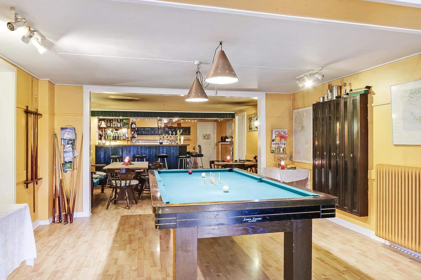 Hovedbygningen, som i stueetagen andrager ca. 290 m², har tjent som både bolig og erhverv for den nuværende ejer. Den er indrettet med krostue med barområde, kundetoiletter og ikke mindst godt udnyttet og velindrettet køkken med særskilt vaskeafsnit og køl/frys.