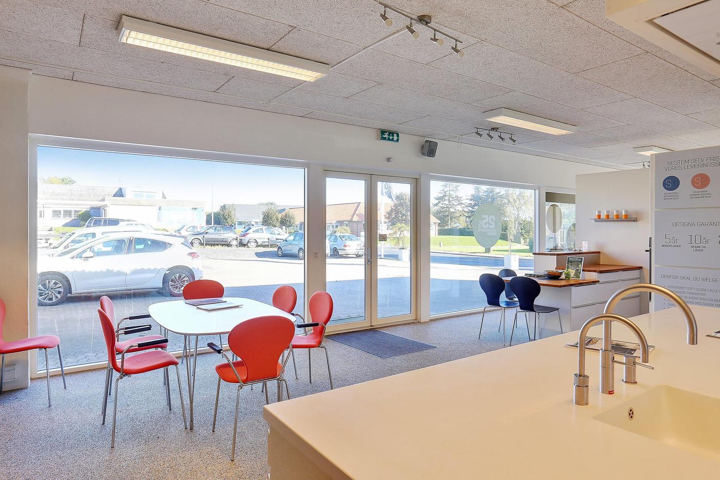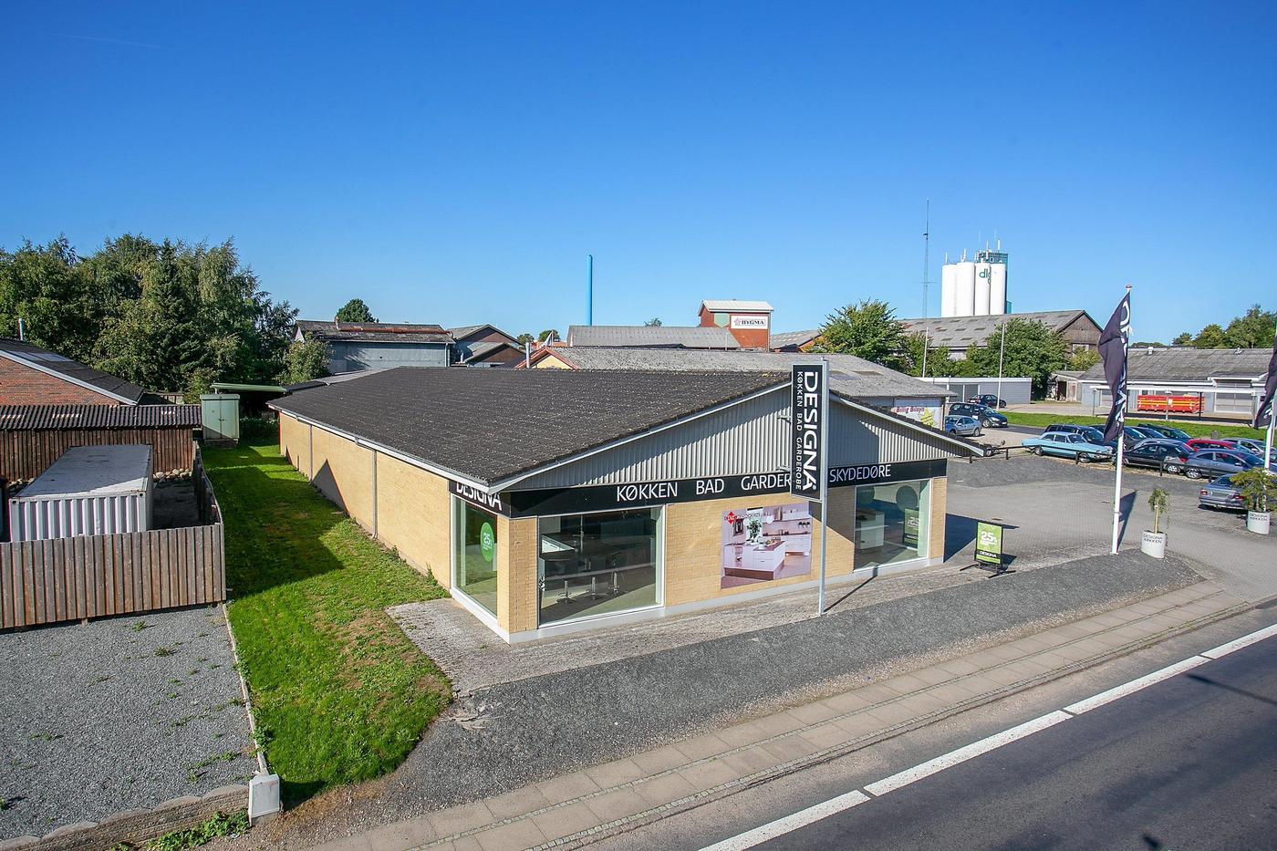 Forretningsejendom med tilhørende lager, beliggende i Ringes sydlige erhvervsområde, tæt ved dagligvarebutikker samt Jysk, Jem & Fix m.fl. Ligeledes findes der flere bilsalgsforretninger i nærområdet.
