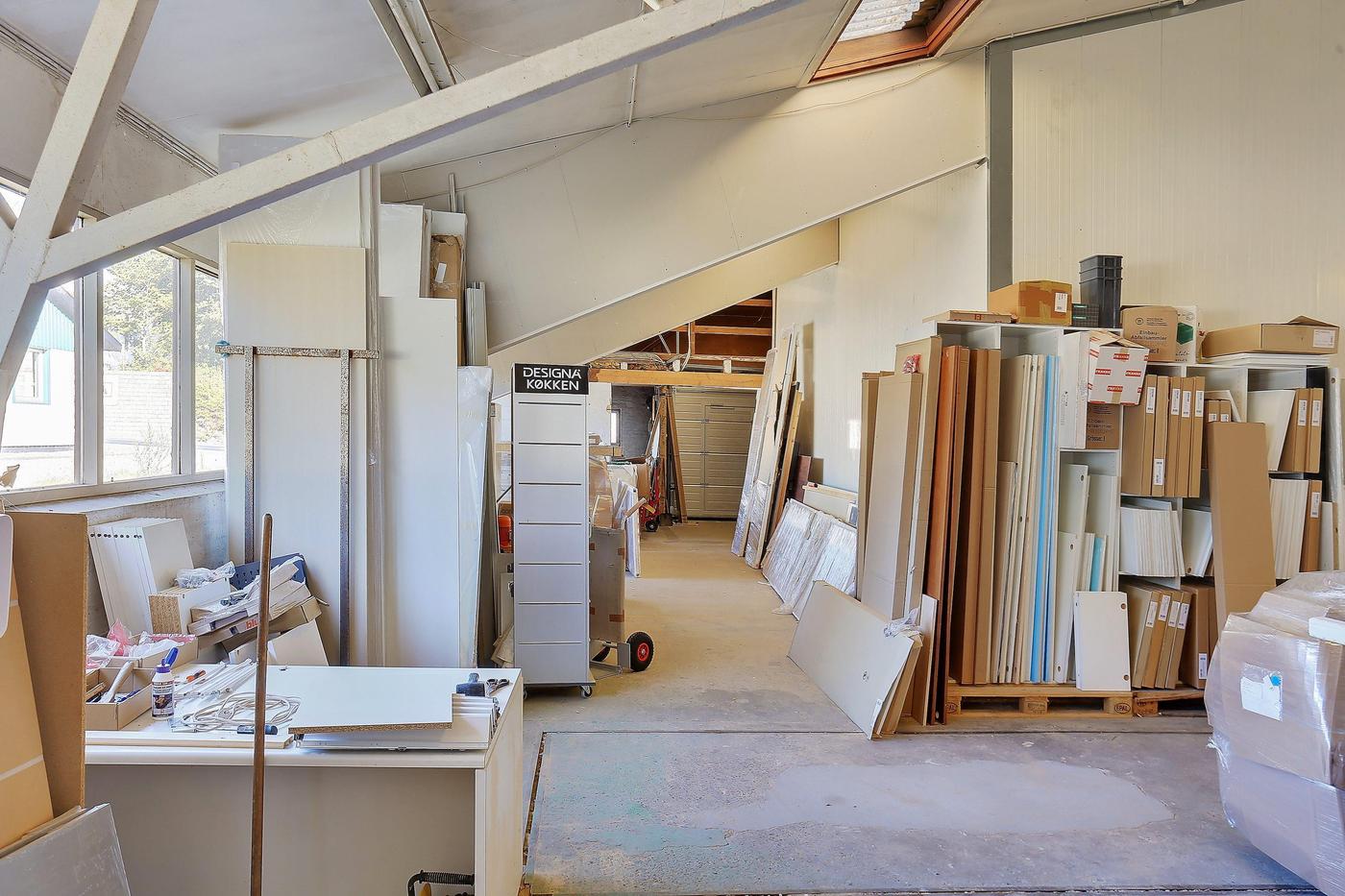Lagerbygningen, som også huser bilsynsvirksomhed, er opført i 1970, og er på i alt 360 m². Lejemålet råder over ca. 212 m² og bilsynsvirksomhedens lejemål udgør 148 m², og er adskilt af isoleret pladevæg.