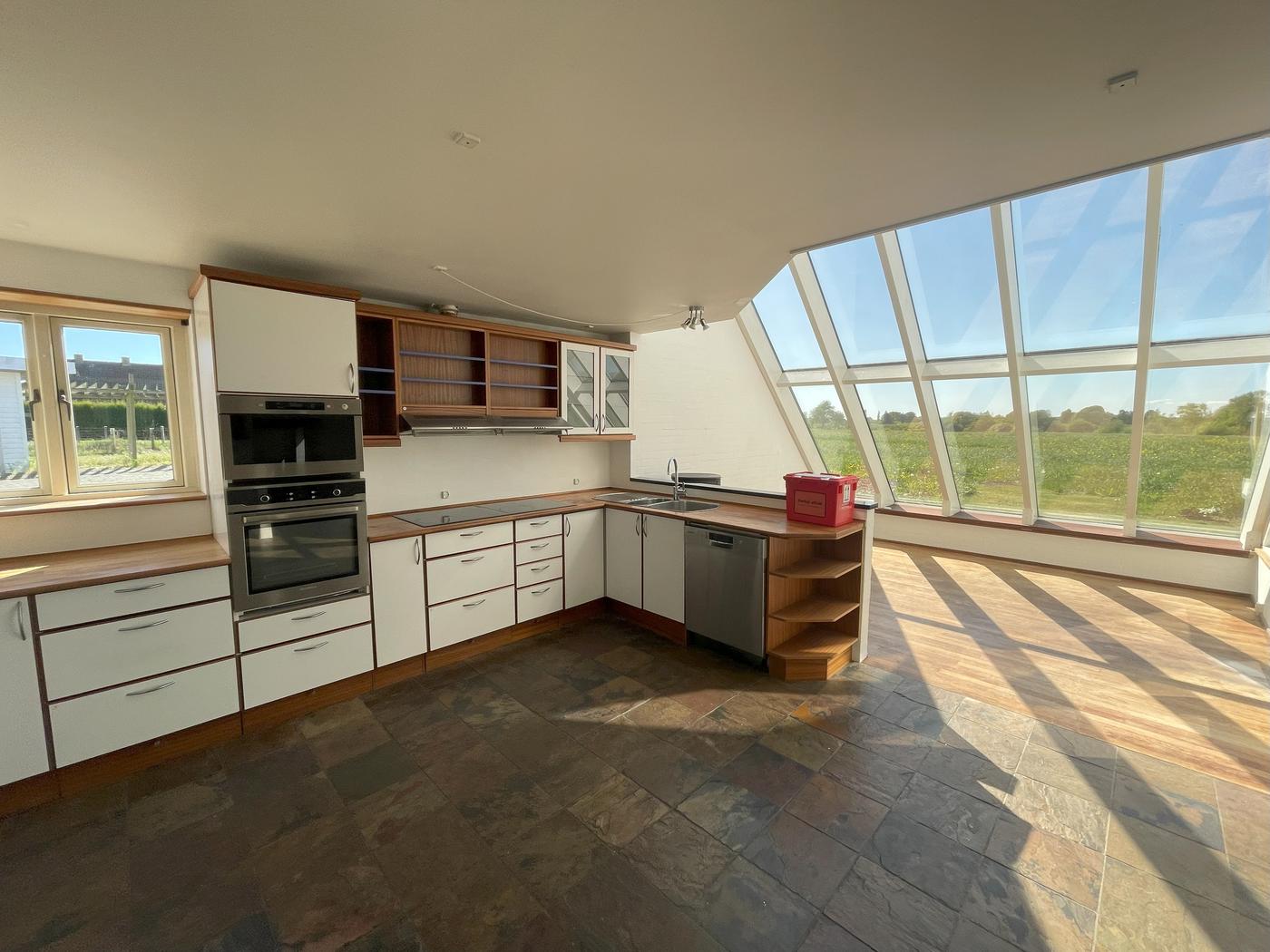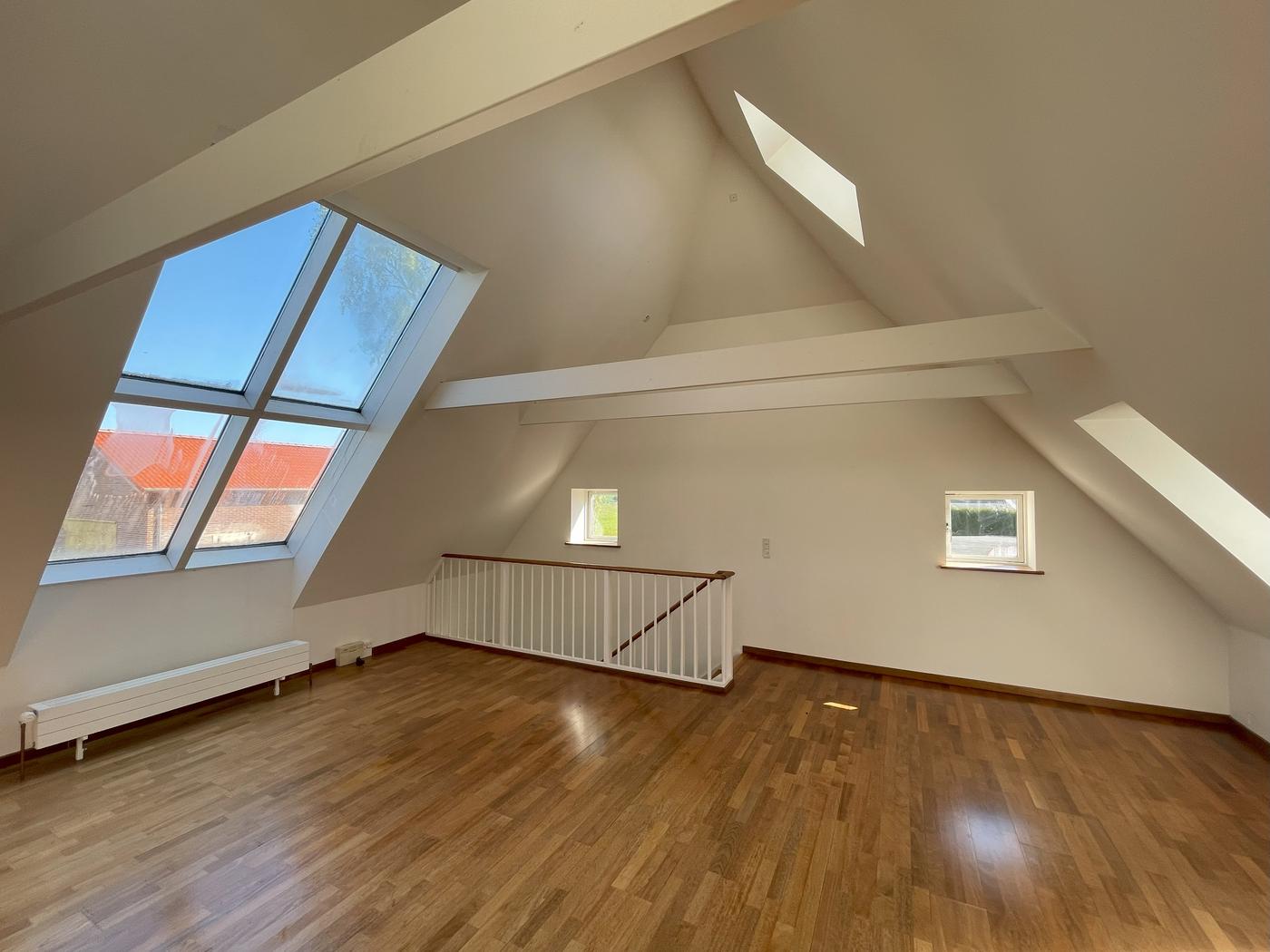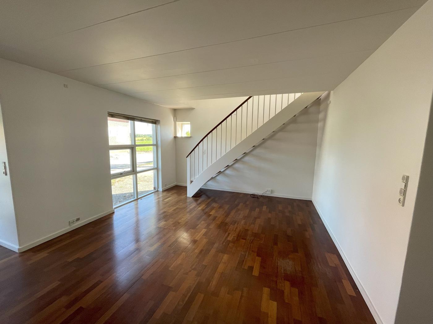 Der er adgang til lejligheden fra bygningens vestlige side og lejligheden er indrettet med flere spændende løsninger. Her er stort køkken/alrum med spiseplads, hvor der er udsigt over de nærliggende marker. Over køkkenet er der opført indskudt åben etage, hvor der kan indrettes stue, herudover adgang til stort soveværelse med badeværelse.