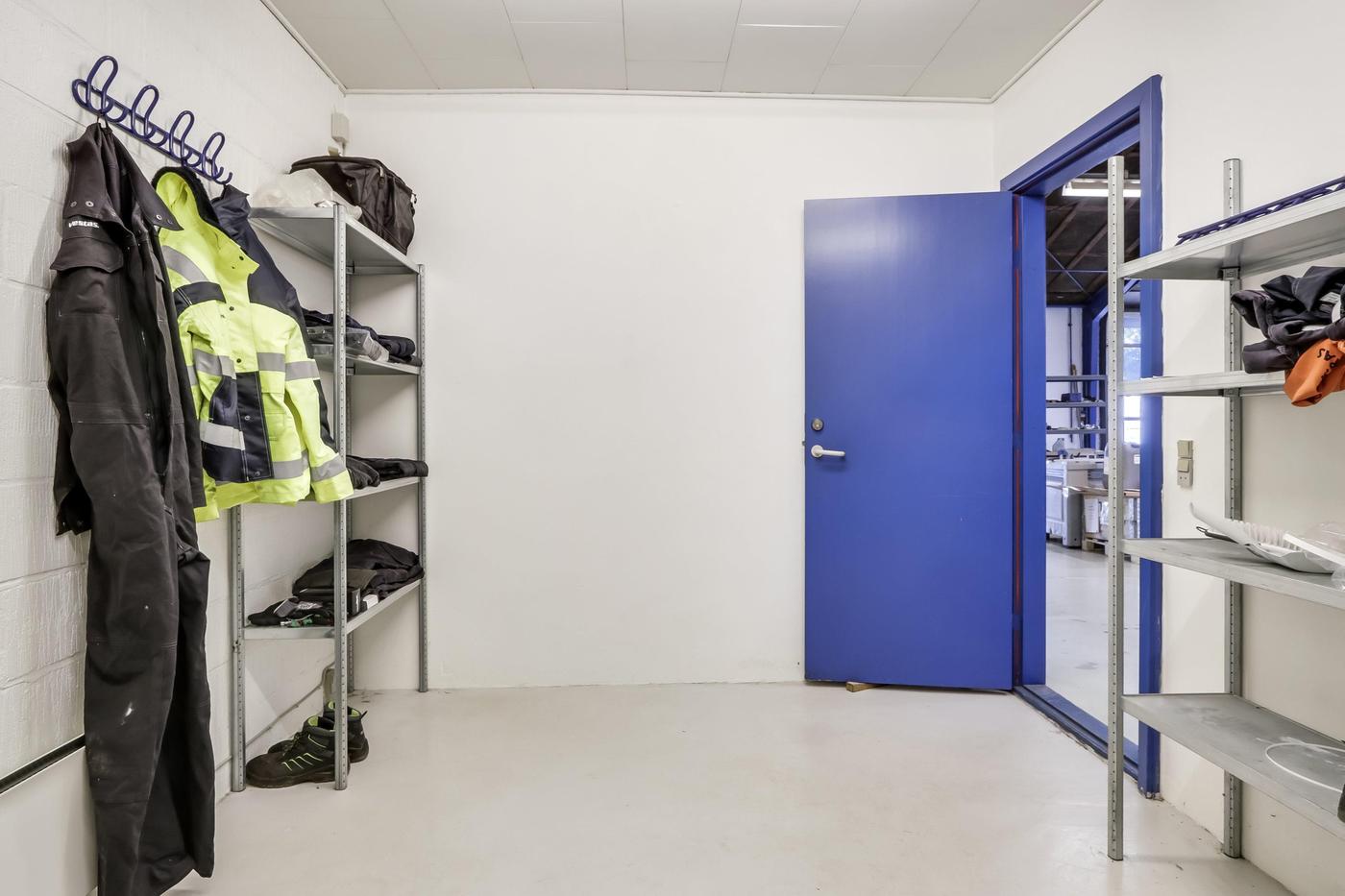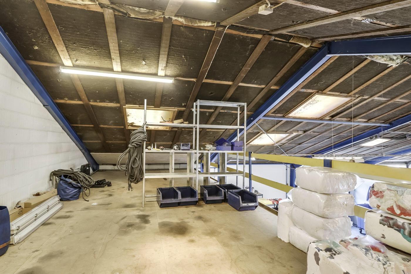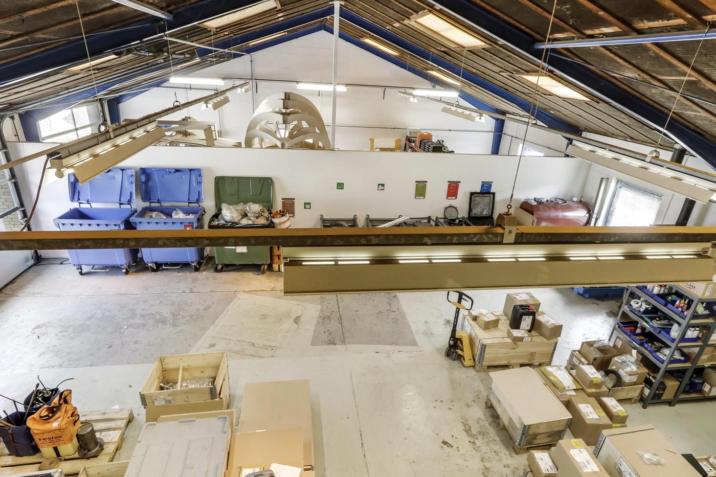 Hallen er en isoleret opvarmet hal med støbte gulve. Der er en frihøjde i siderne på ca. 3½ meter og til kip ca. 5½ meter. Hallen forsynet med 2 aluhejseporte på ca. 3x3 meter.