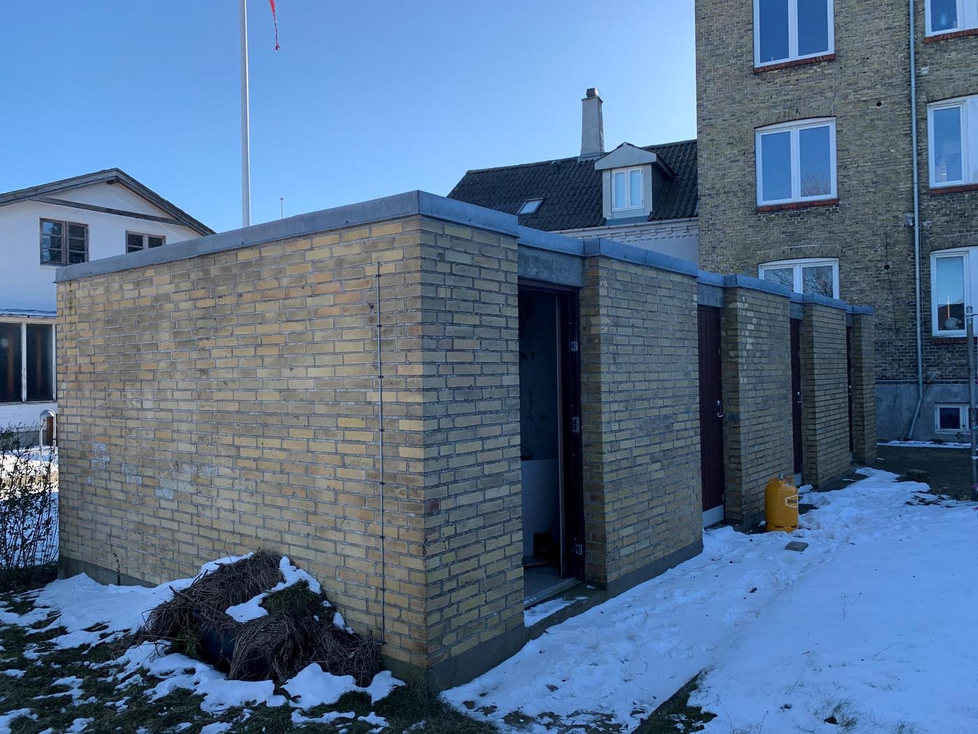Bagved ejendommen ligger der en ejendom, som benyttes til depotrum til de 3 lejere samt cykelskur/vaskehus. Der er sat nye døre i bygningen for 5 - 6 år siden. Det skal dog bemærkes, at bygningen trænger til noget vedligeholdelse/istandsættelse.