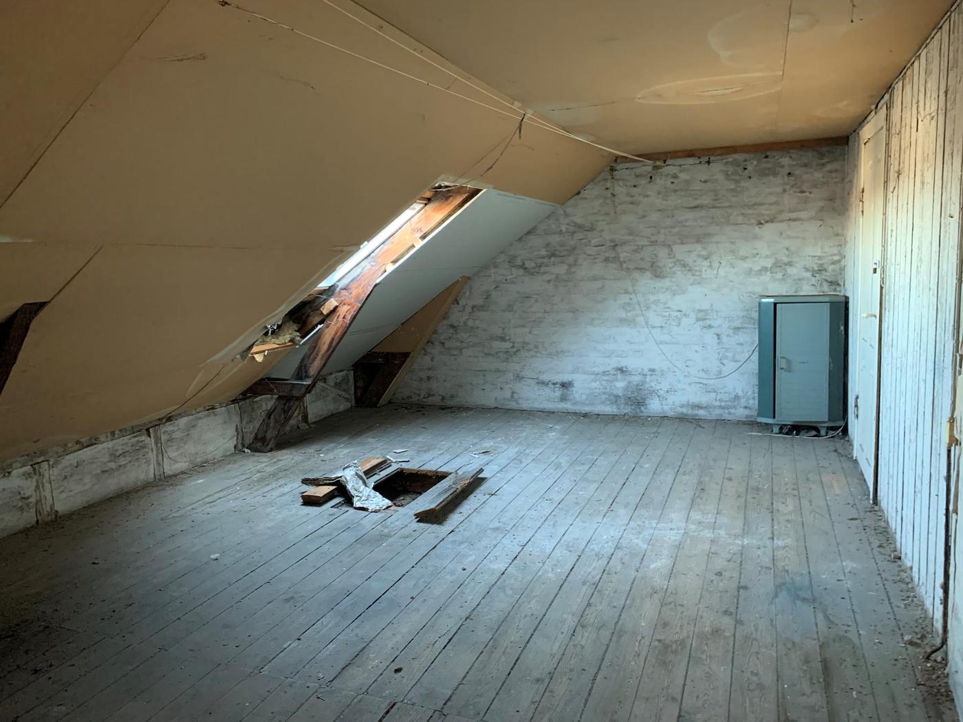 Der er et større loftareal, som formentlig vil kunne omdannes til en ny bolig.