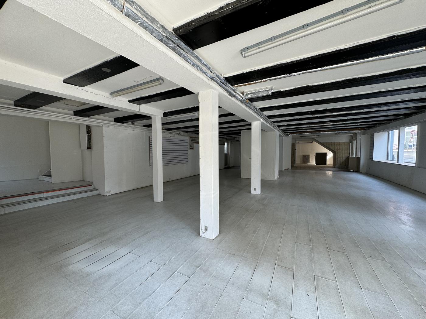 Lokalet er indrettet yderst fleksibelt og med sit meget store gulvområde, er enhver indretning af lokalerne muligt.