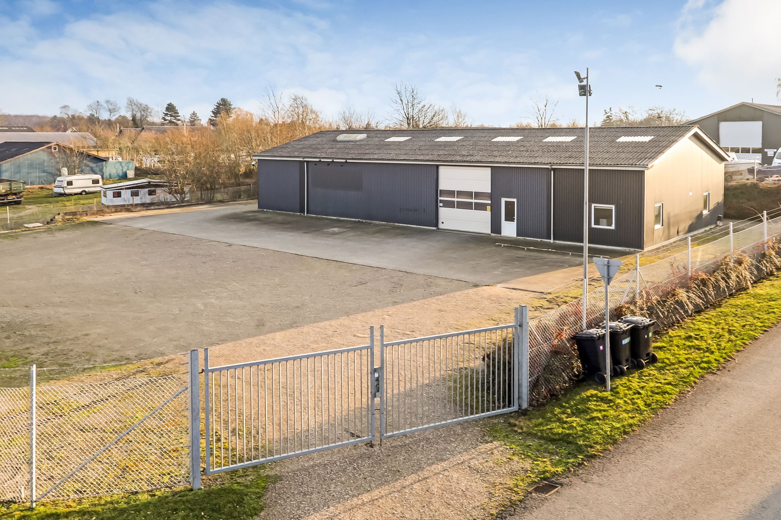 Der er el porte i gavl og på langsiden, i størrelsen 4,0 x 4,0 meter.