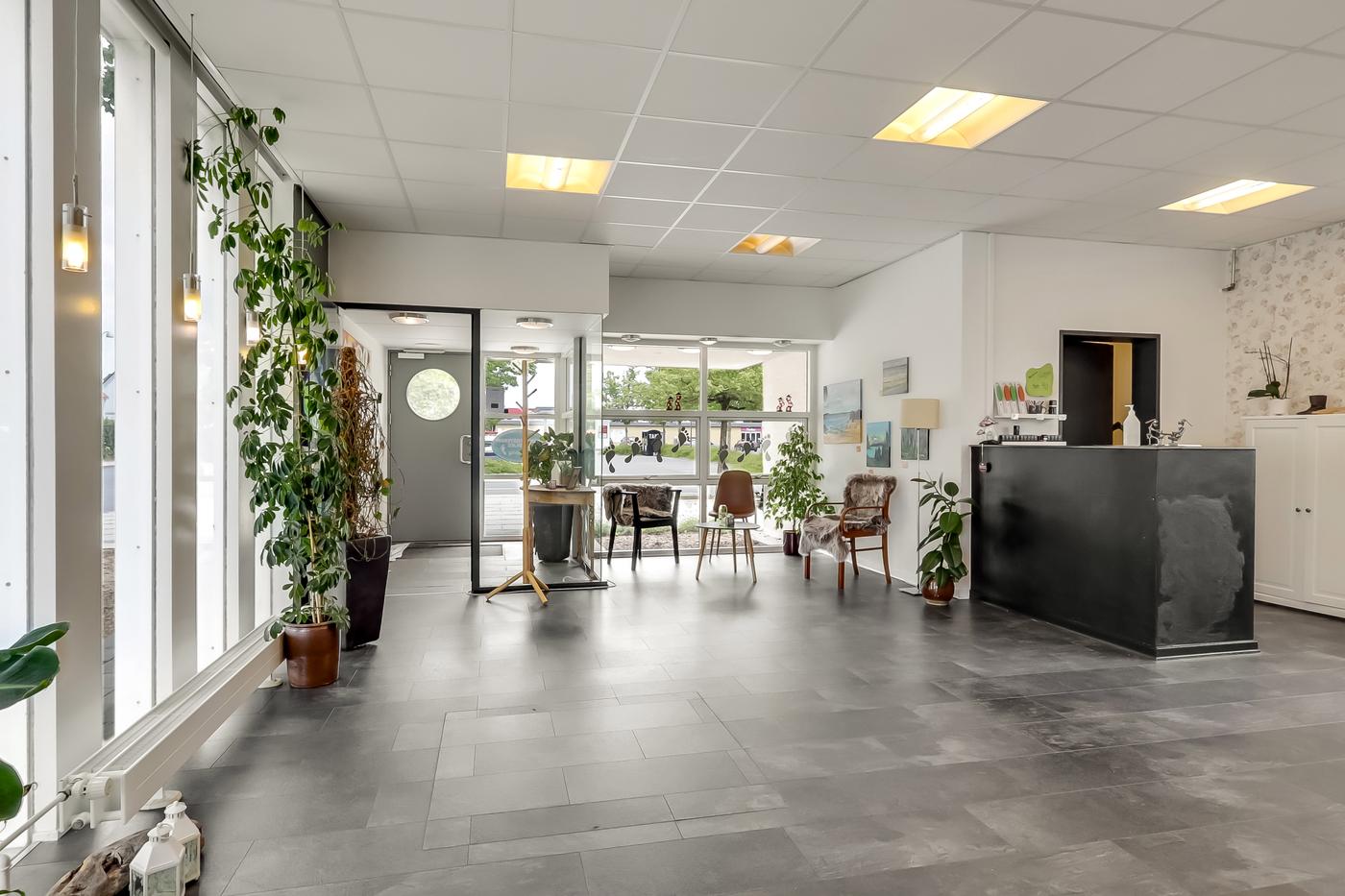 Ejendommen henvender sig især til en fremtidig anvendelse som blomsterbutik, frisørsalon eller mindre klinik.