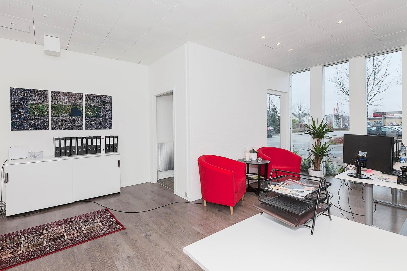 Lejemålet fremtræder velholdt og råder bl.a. over gulv til loft vinduesparti i facaden mod parkeringsarealet.