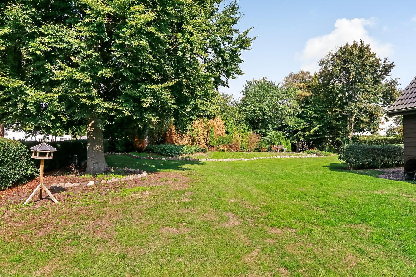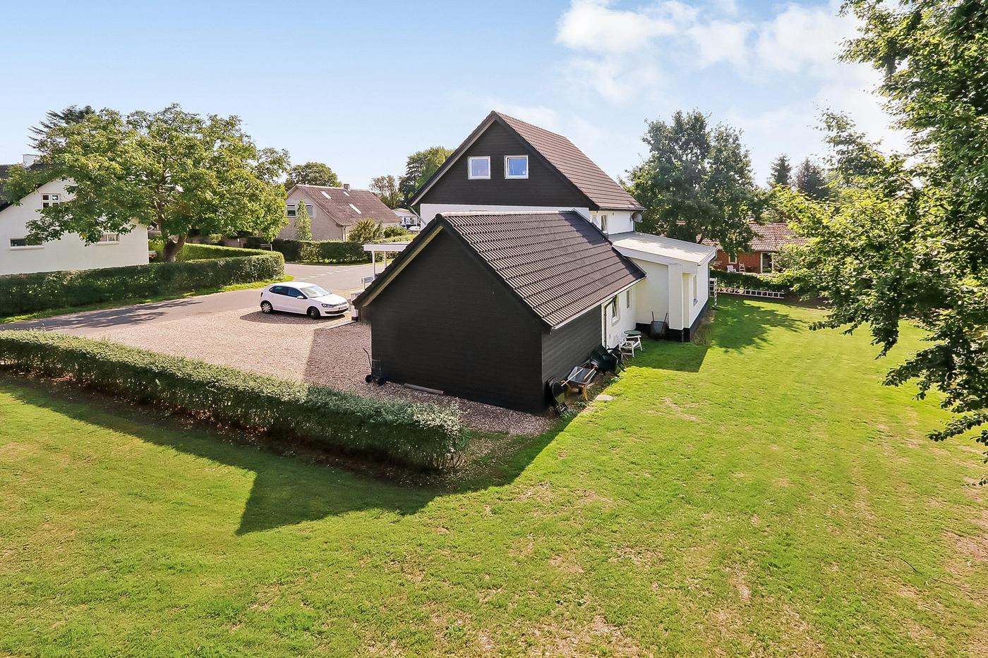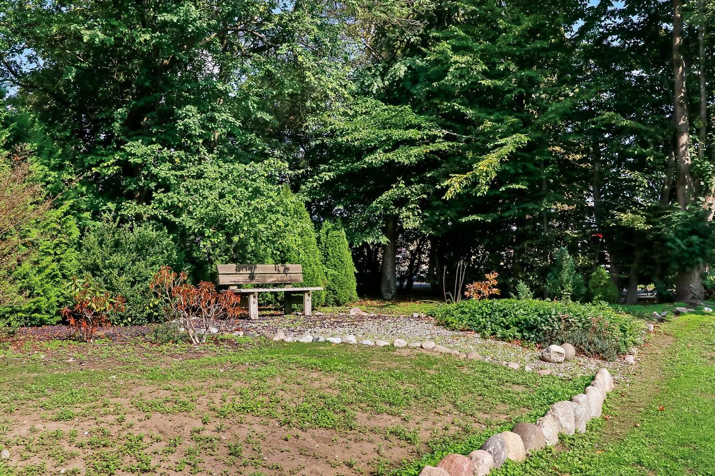 Den ubebyggede del af grunden er fortil anlagt med parkeringsplads og bagtil med have.