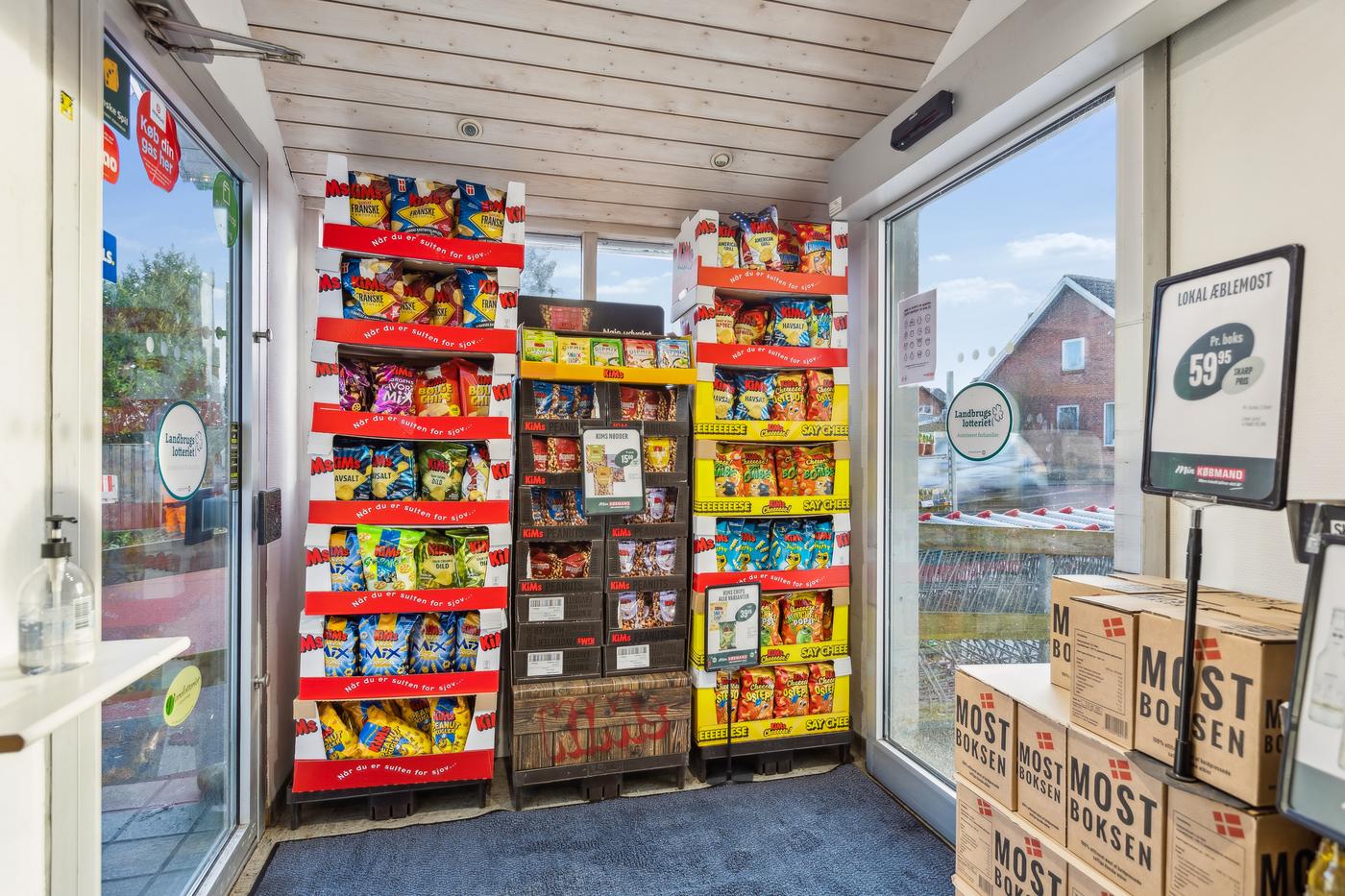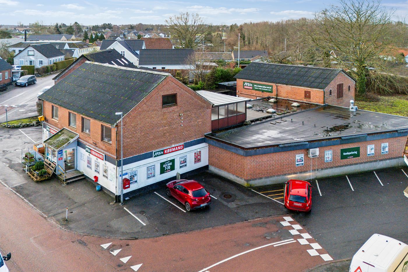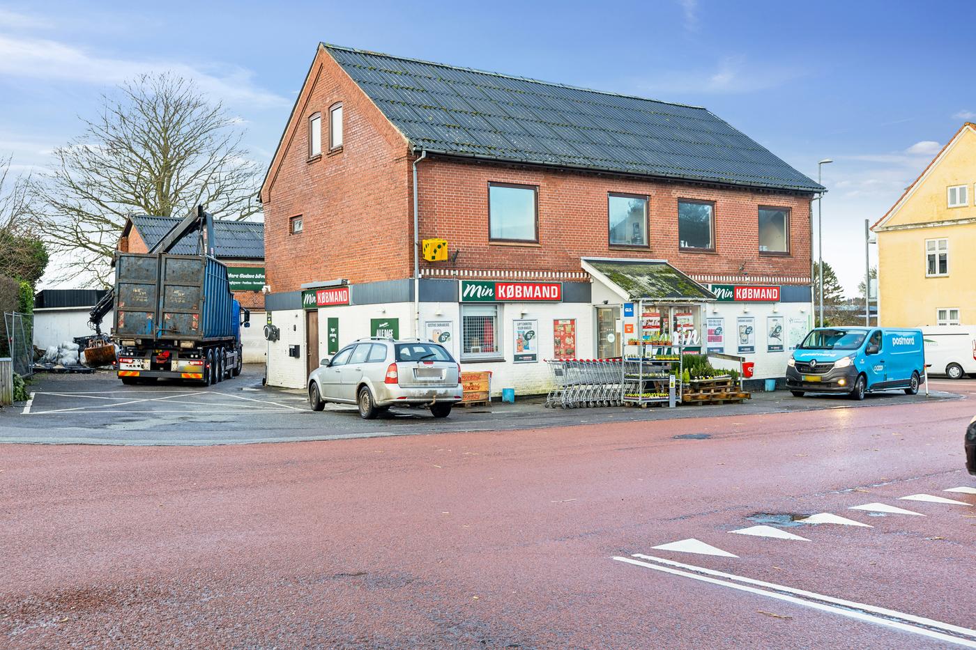 Ejendommen er centralt beliggende i Gudme og omfatter et samlet grundareal på 493 m². Erhvervsarealet udgør 493 m² og er i dag udlejet til Min Købmand, der råder over alt inventar i erhvervsdelen. Lejekontrakten er uopsigelig frem til den 31. december 2025.