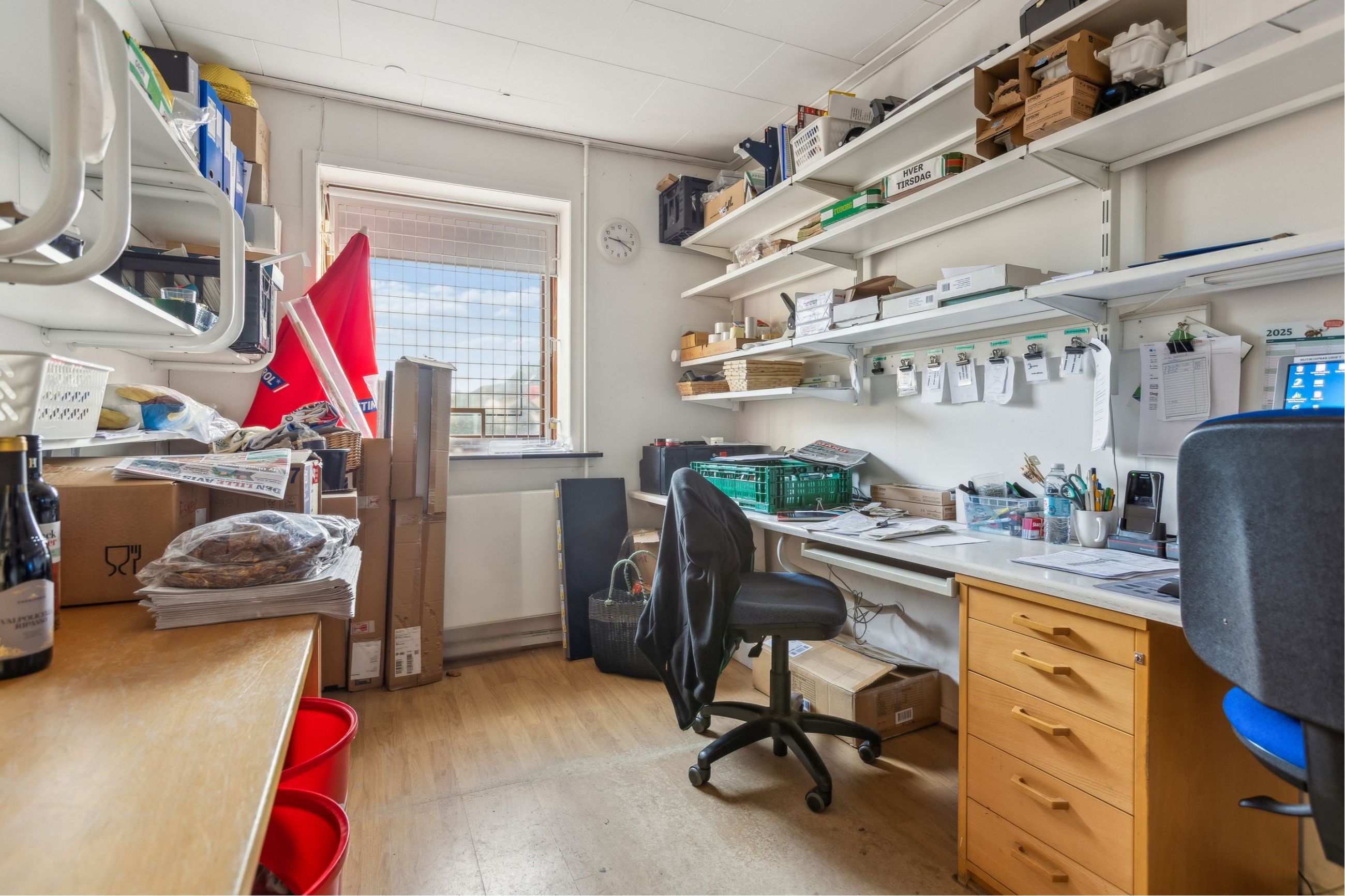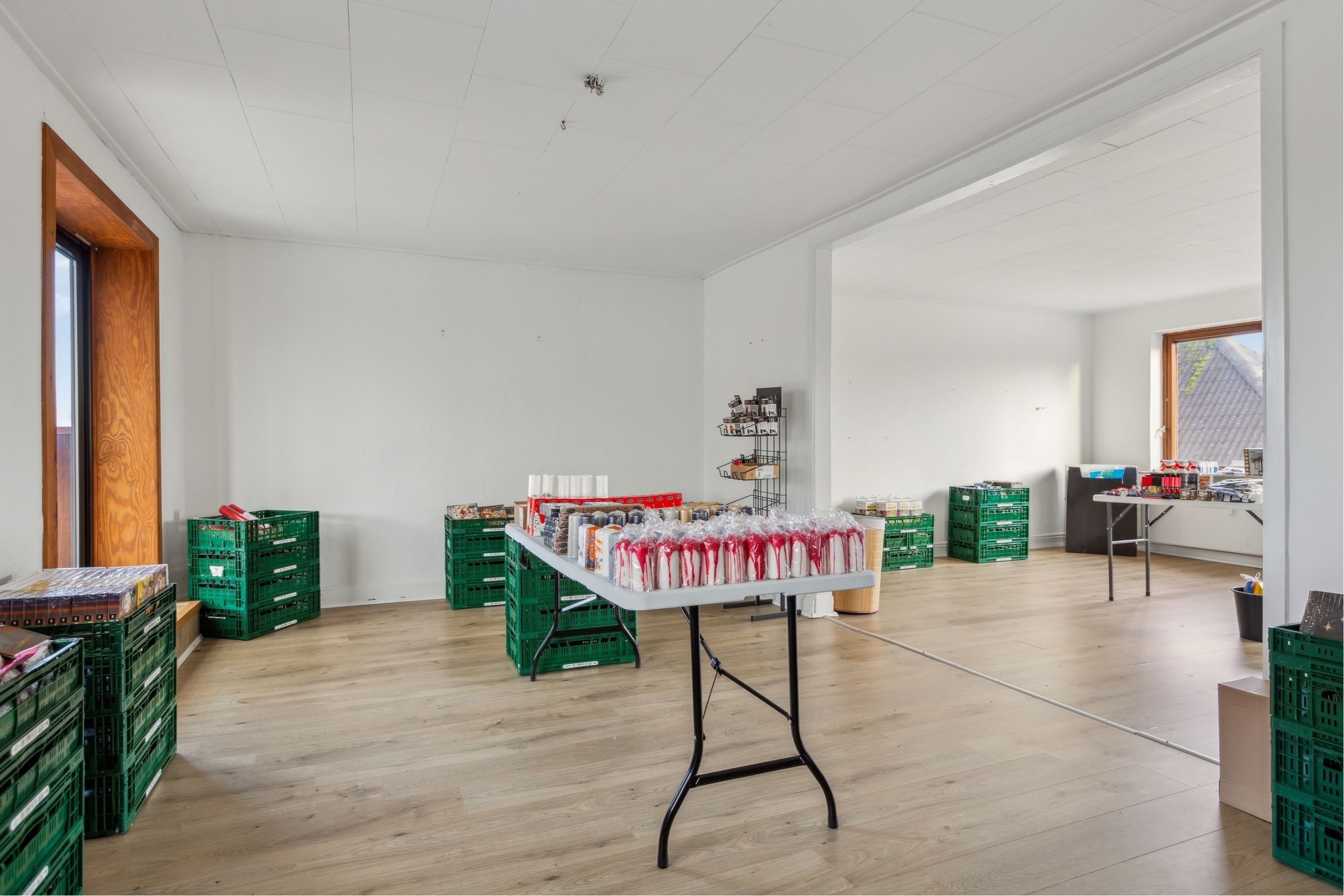 Derudover indeholder ejendommen et boliglejemål på 130 m², som i øjeblikket står ledigt og klar til en opfriskning af den kommende ejer.