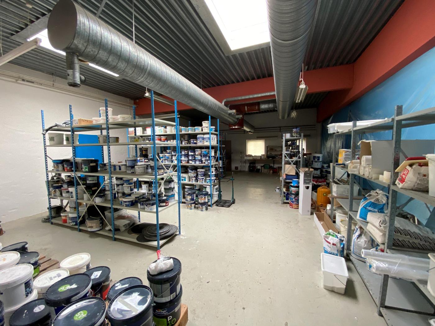 Fra kontorafsnittet er der adgang til værkstedets største rum, som udgør ca. 300 m². Herfra er der adgang til garageområde med hejseport, som udgør ca. 100 m² samt til tidligere malersalgsbutik på ca. 60 m². Butikken kan fortsat benyttes, hvis dette ønskes, idet der er etableret entrédør, og flisebelægning med opgang til Schnohrsvej. Der findes ligeledes 2 mindre rum i det store lokale, som tilsammen udgør ca. 30 m². Der er hejseport med rampe til værkstedet.