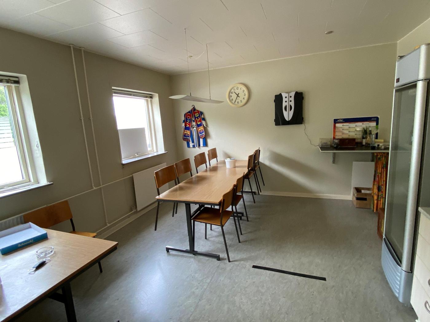 Ejendommen har i mange år været anvendt til malervirksomhed. Ejendommen har indgang fra den vestlige side, hvor der også findes parkeringsområde foran bygningen. I dette område findes et pænt kontorafsnit på ca. 125 m², som indeholder 3 kontorer i den ene side, og i modsatte side en frokoststue, omklædningsfaciliteter for damer og herrer, toilet samt teknikrum.