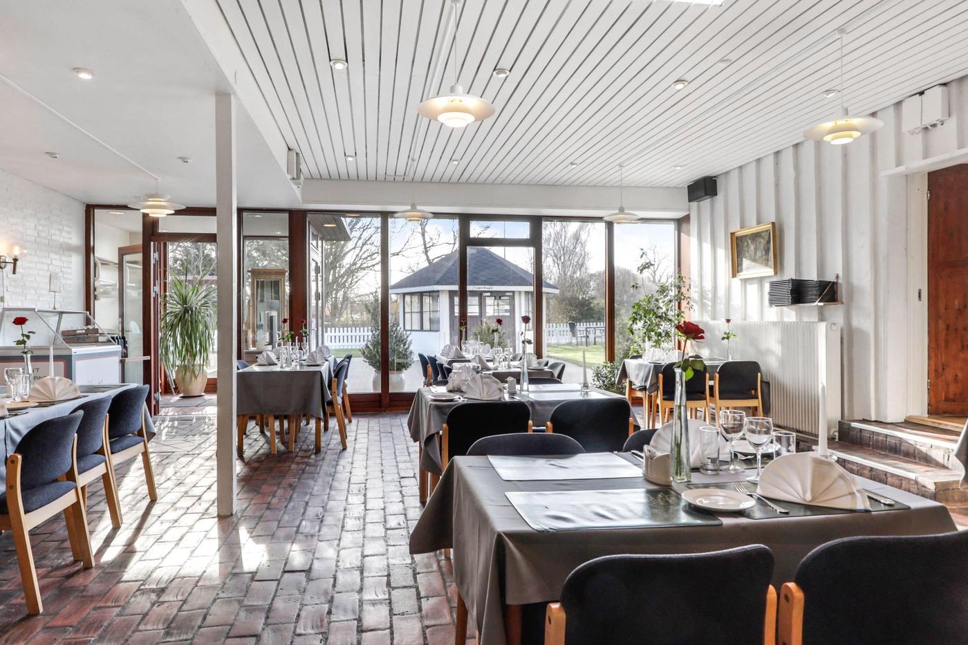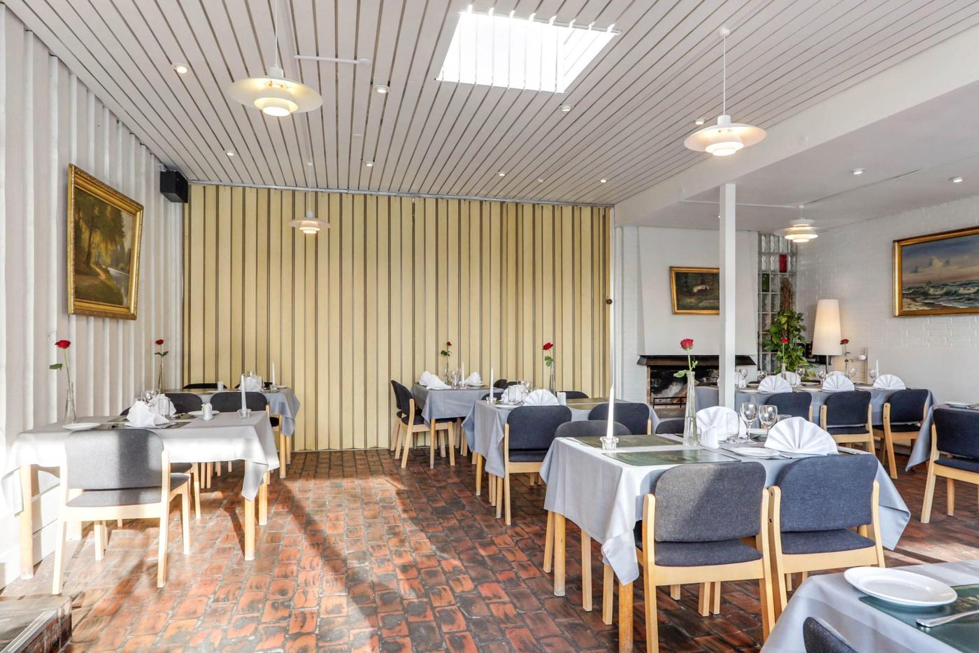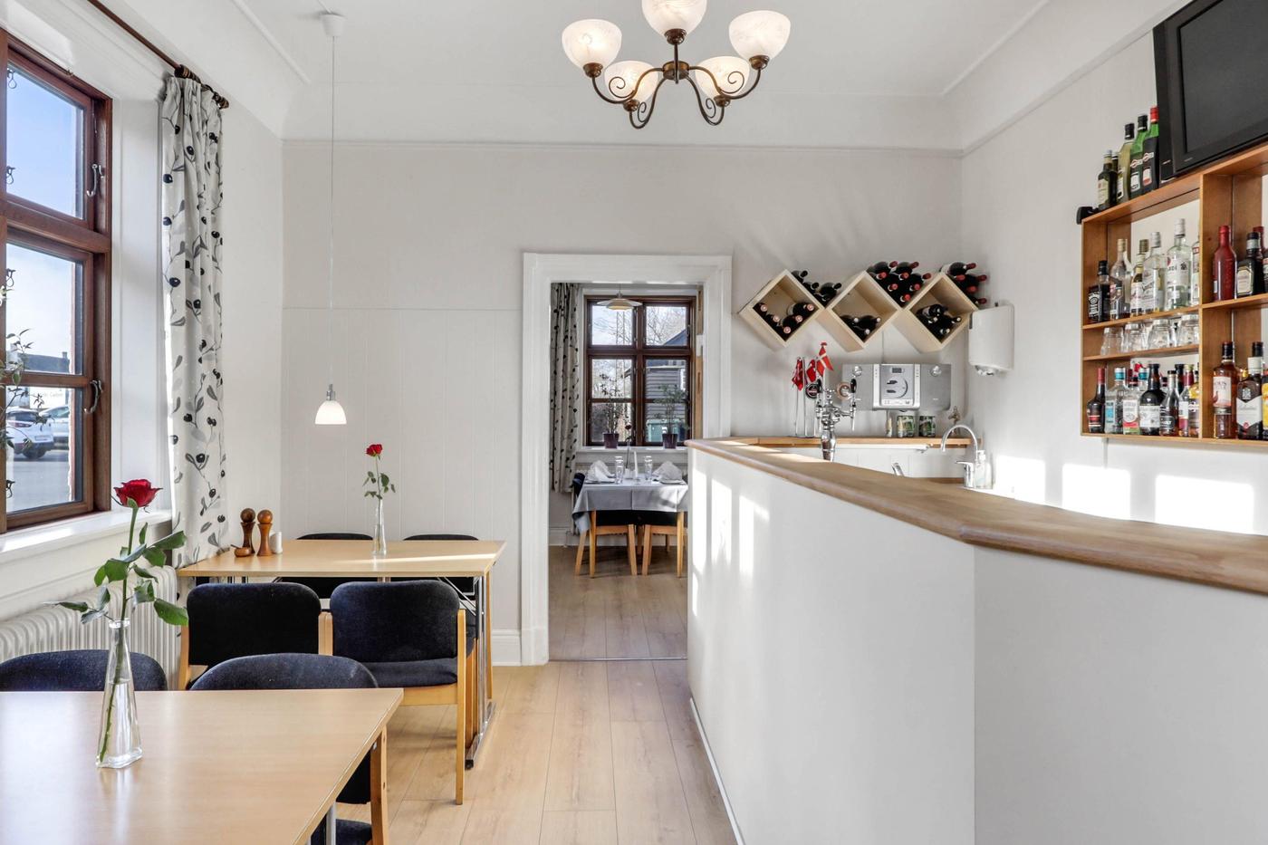 Via separat indgang er der adgang til hyggelig klinkebelagt restaurationslokale med plads til 45 gæster. I forlængelse af restaurationslokalet findes selskabslokale med plads til ca. 65 gæster.