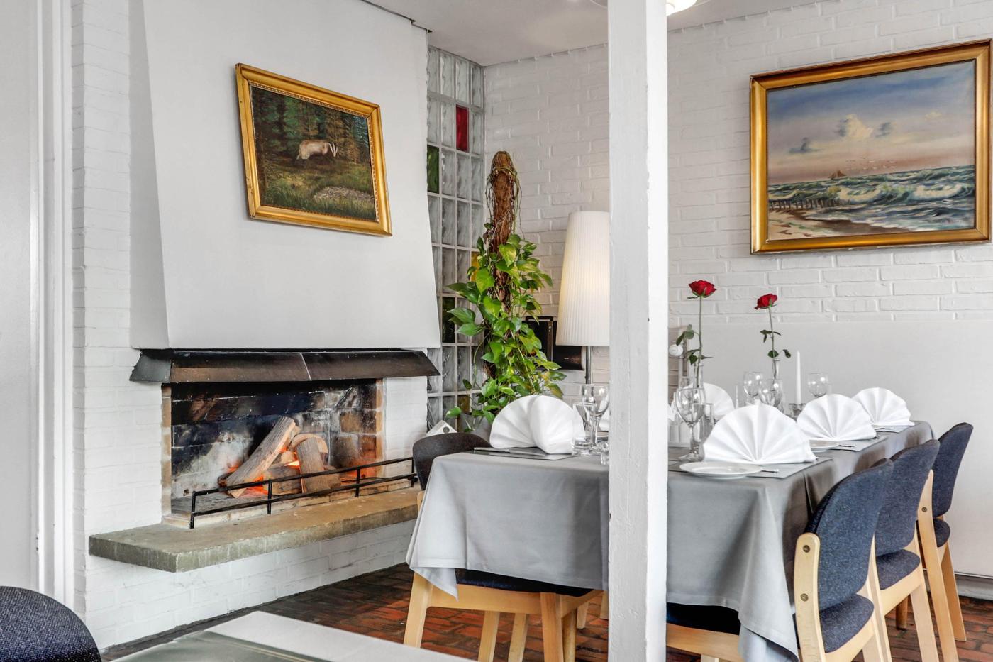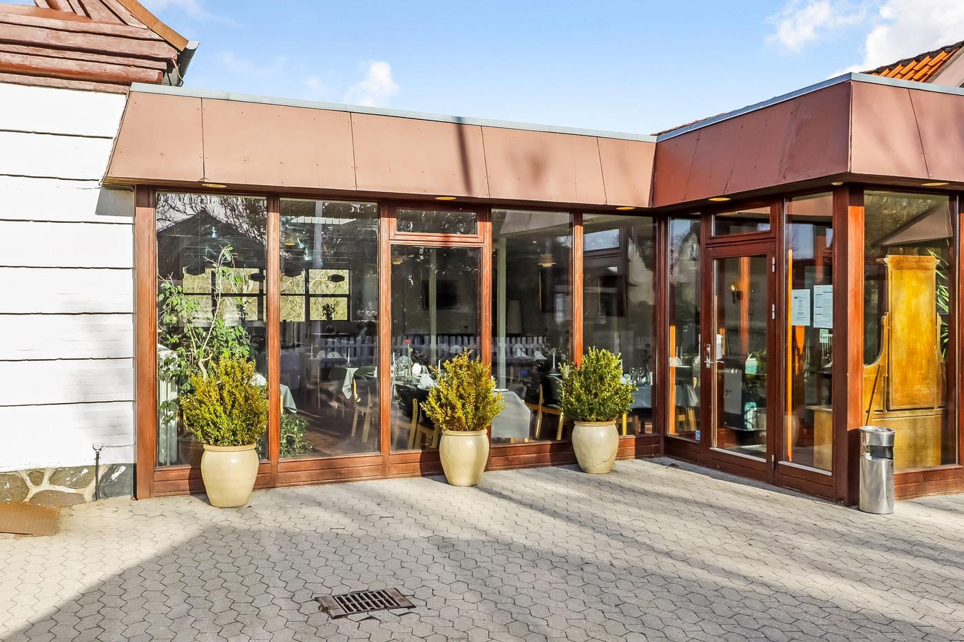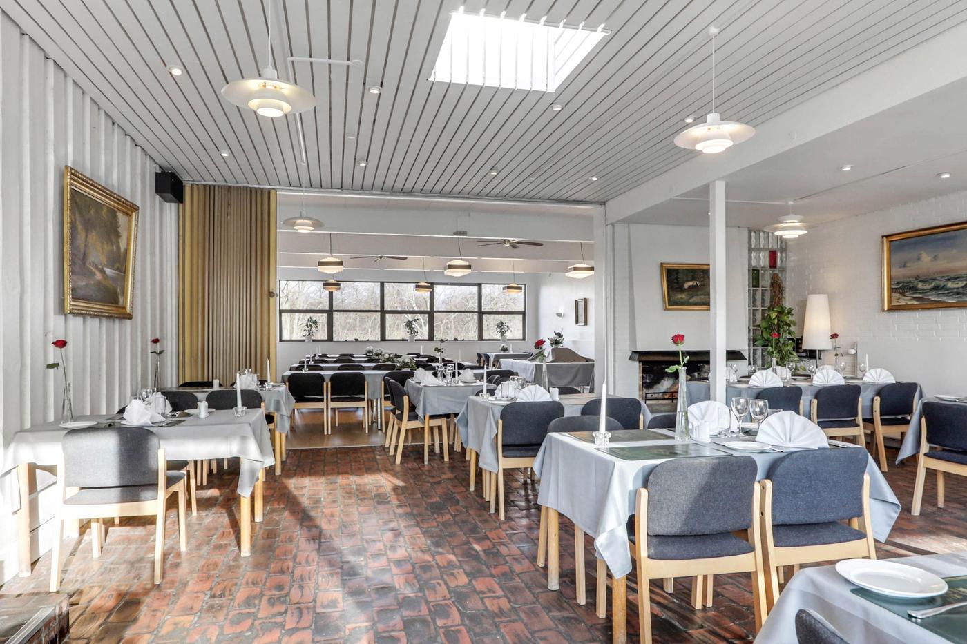 Via separat indgang er der adgang til hyggelig klinkebelagt restaurationslokale med plads til 45 gæster. I forlængelse af restaurationslokalet findes selskabslokale med plads til ca. 65 gæster.