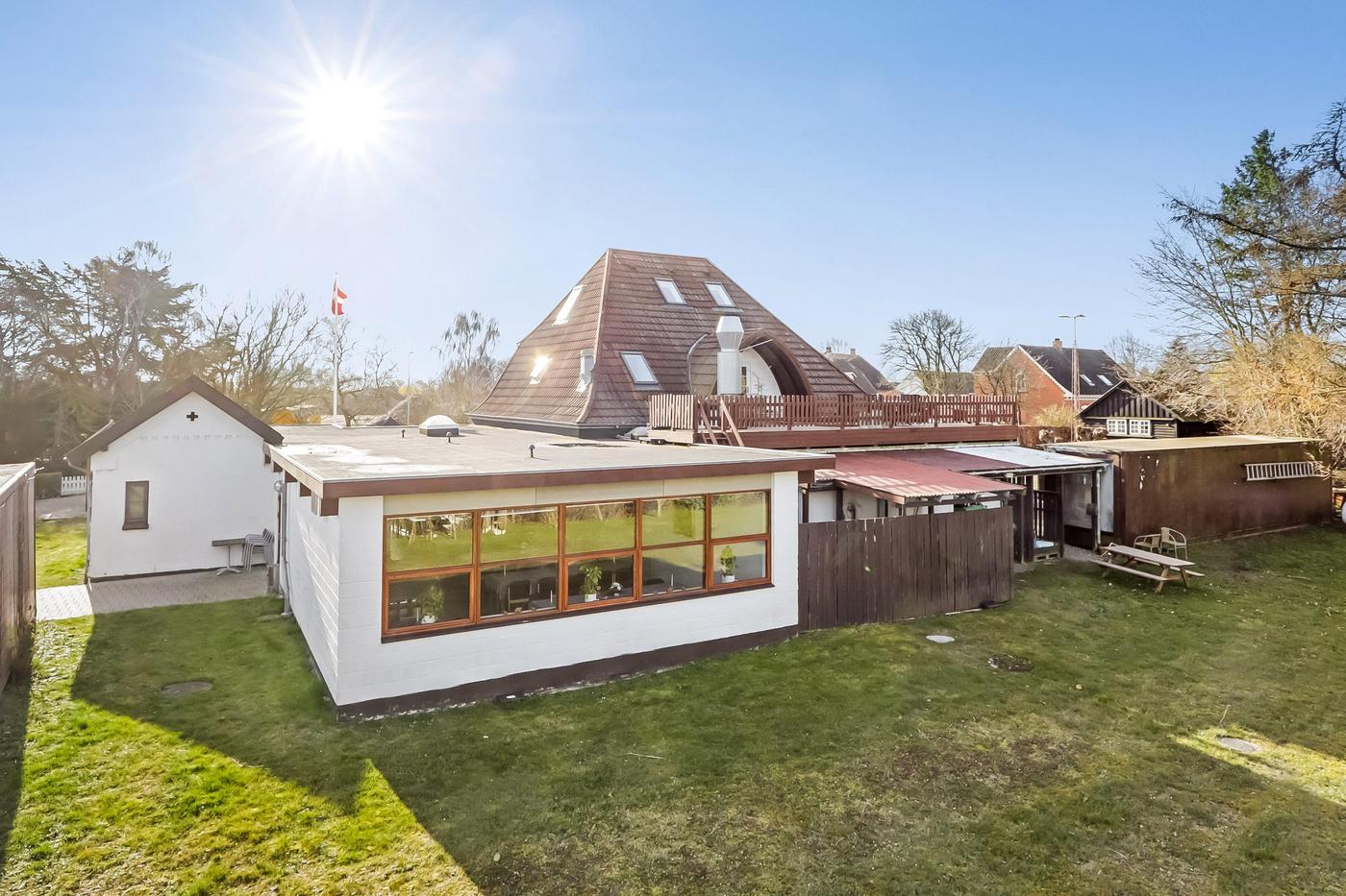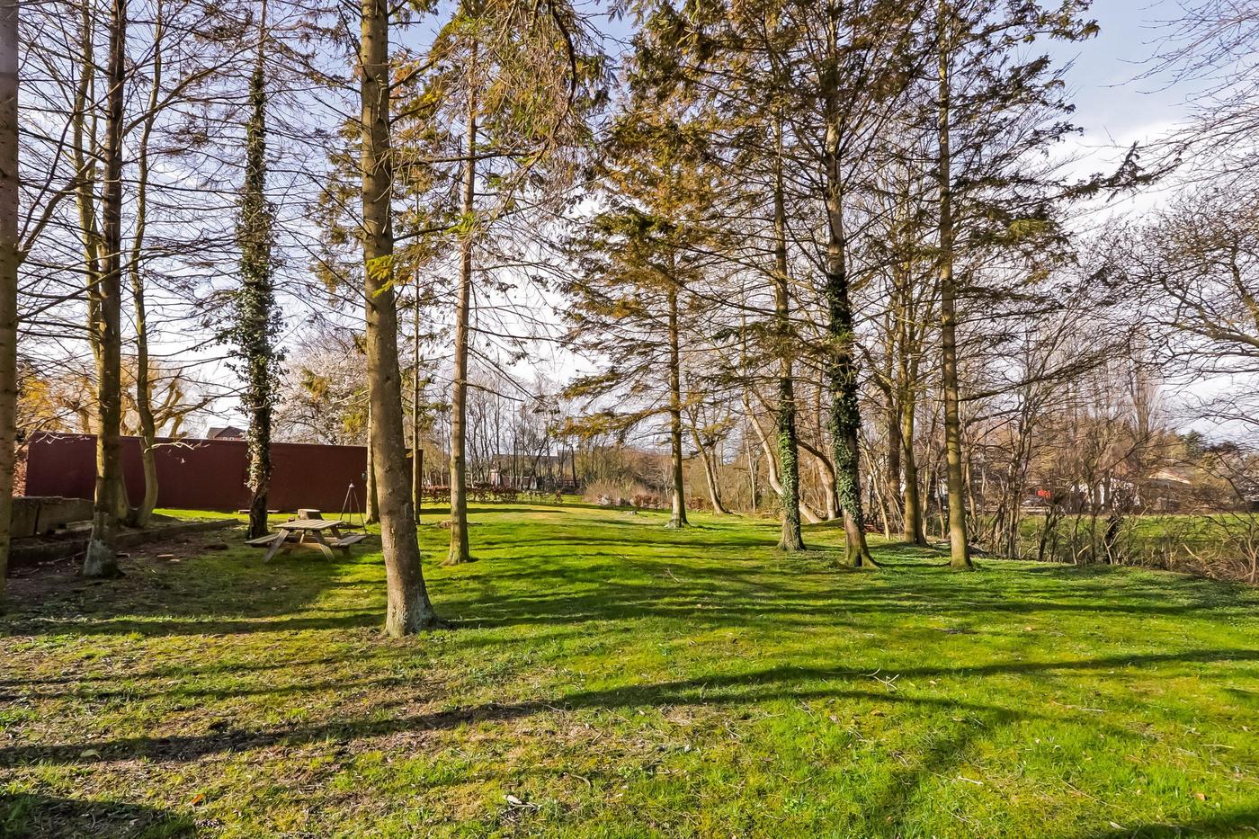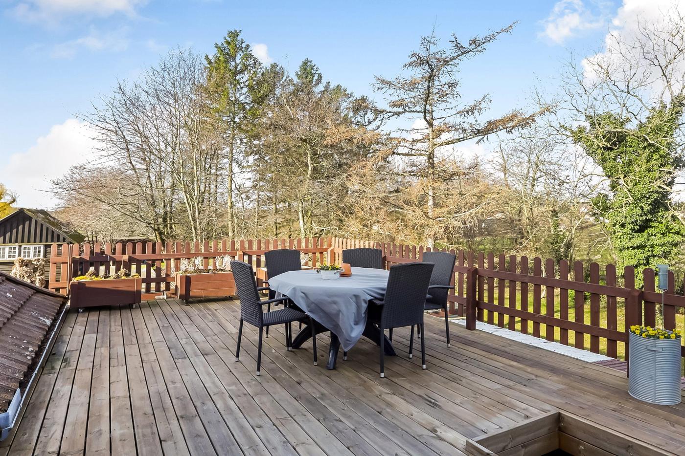 Bag ejendommen er grunden udlagt som have med græs samt gamle store træer.