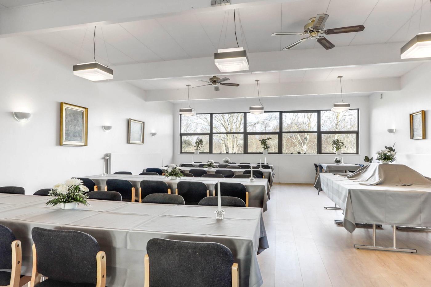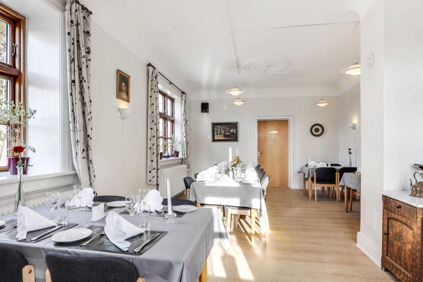 Lokalerne adskilles af en foldedør, der kan åbnes, således der kan afholdes selskaber på op til 110 gæster.