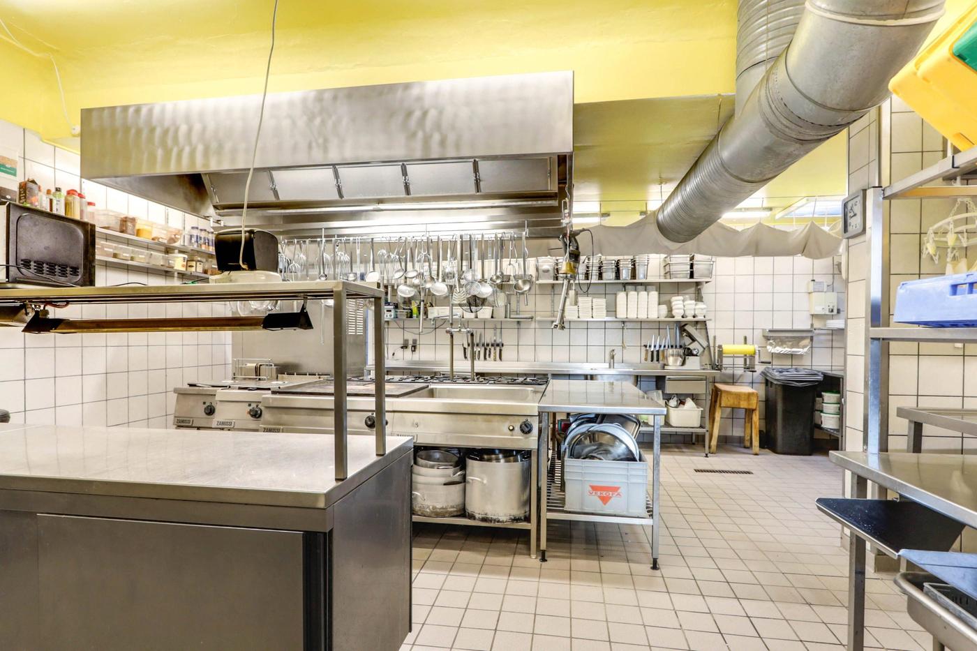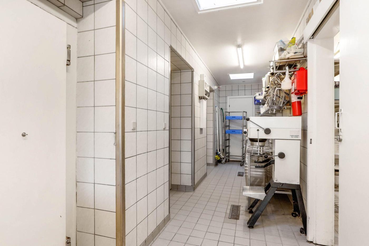 Midt i bygningen findes stort funktionelt køkken sektioneret i varmt og koldt køkken samt vaskeafdeling.