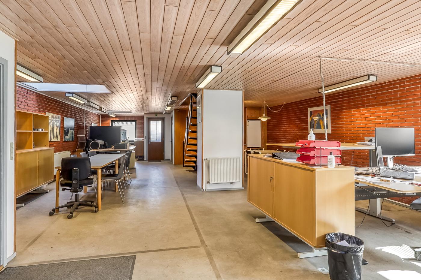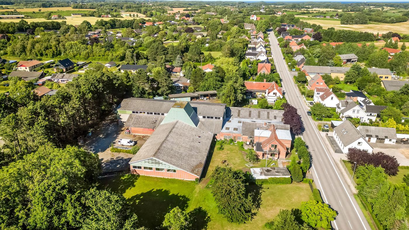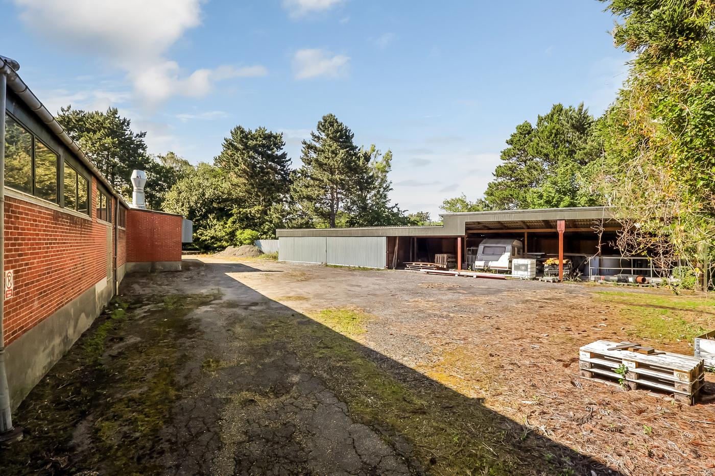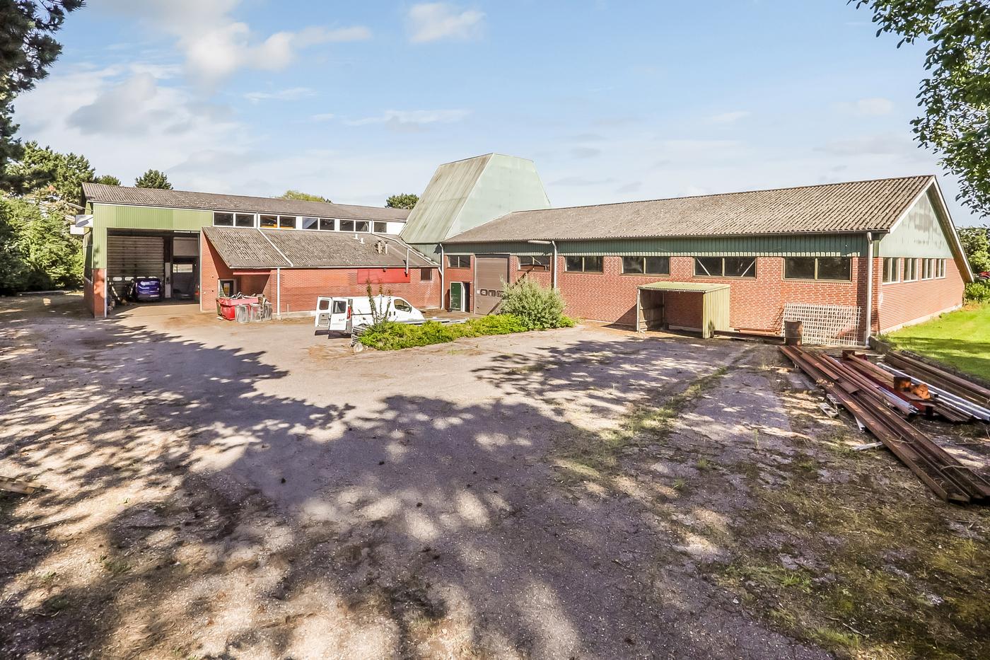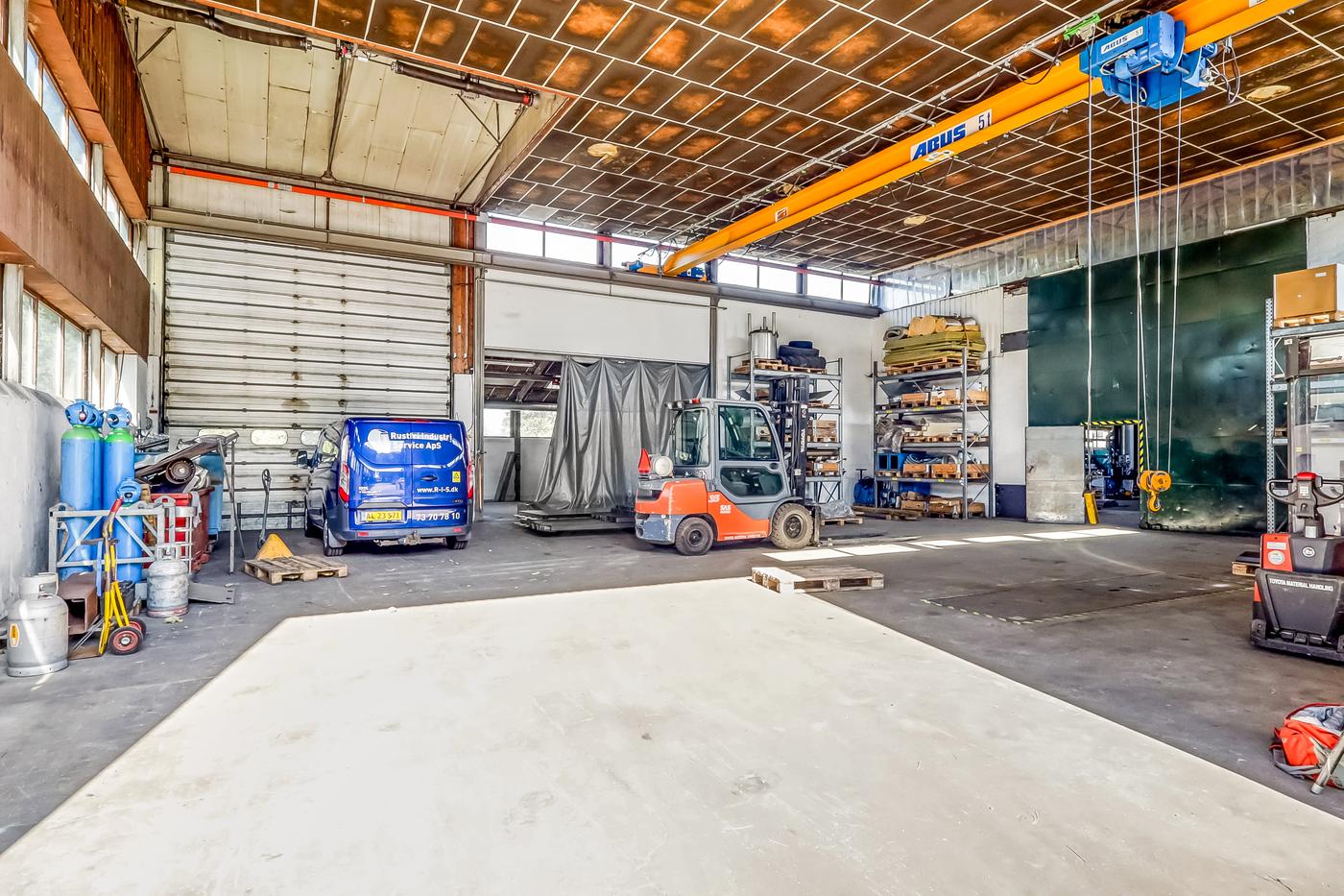 Mod vejen er der et mindre kontorafsnit, hvorfra der er adgang til værksted og separat lagerhal.