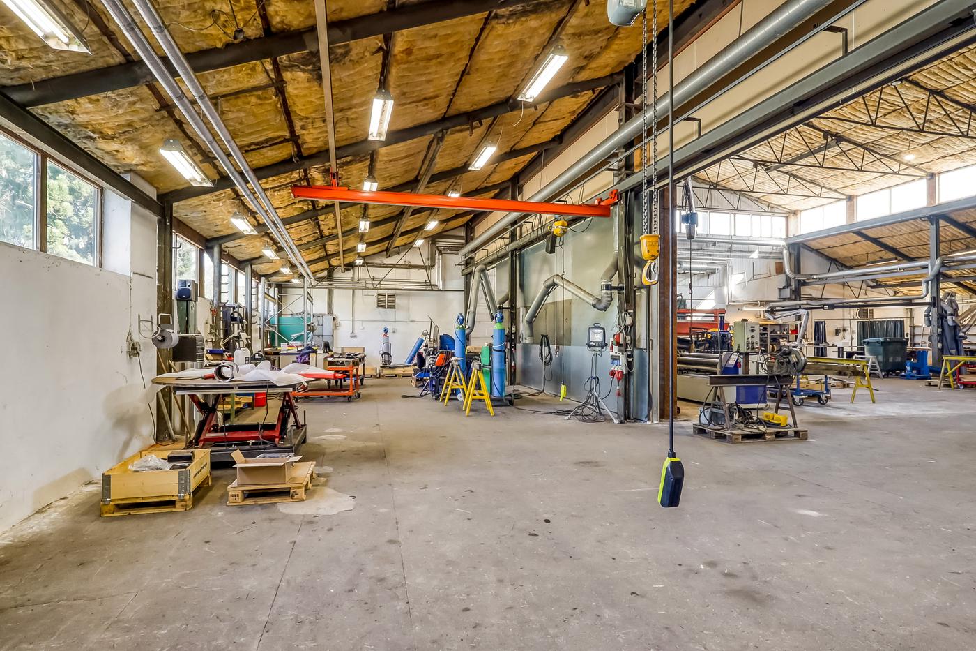 Produktionshallerne er velforsynet med travers- og svingkraner, som kan tilkøbes udover købesummen for bygningerne.