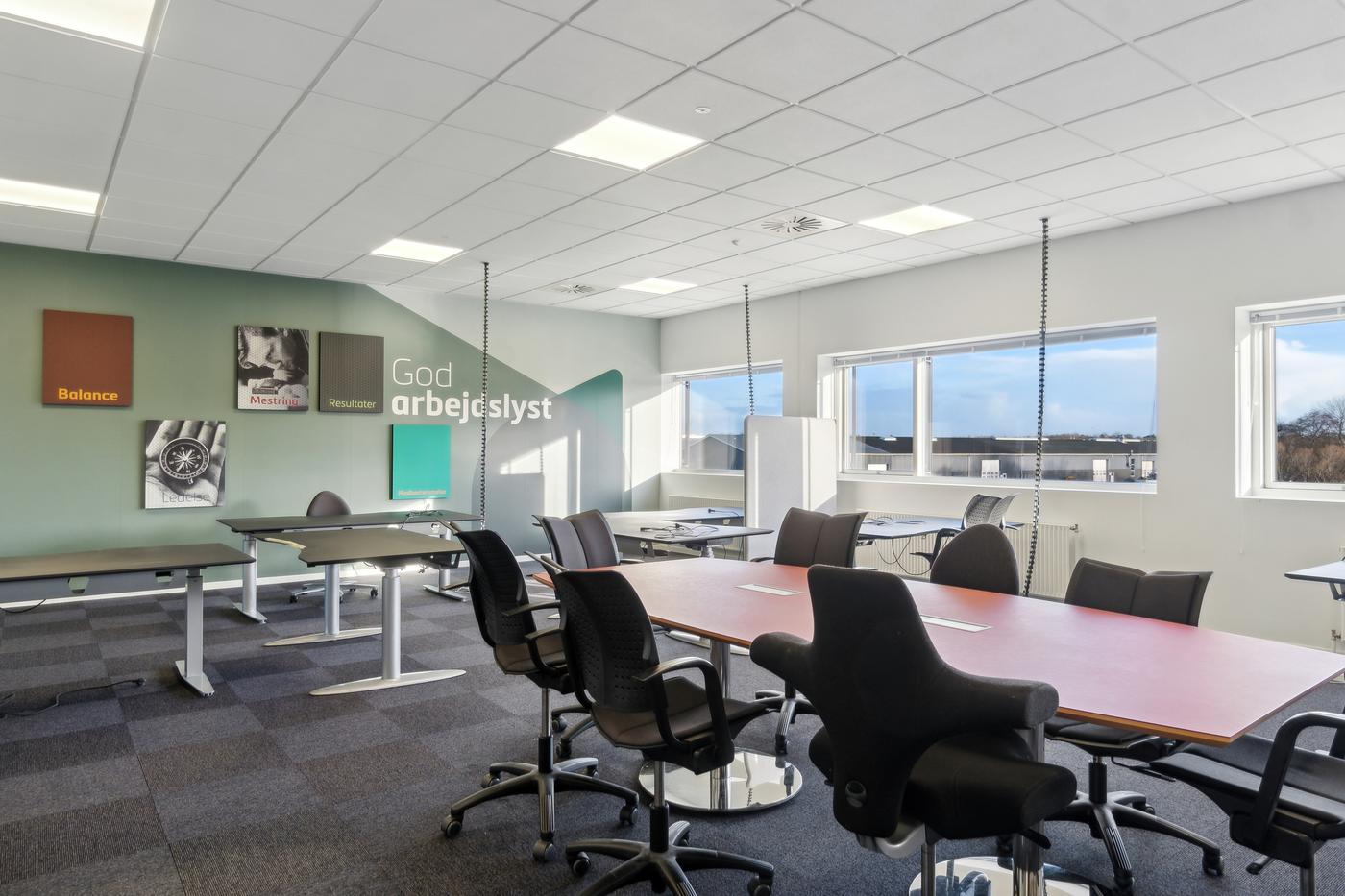 Kontorbygningen er moderne og byder på lyse rum, der skaber et behageligt arbejdsmiljø. Med et integreret ventilationssystem og CTS-system er man sikret et effektivt og komfortabelt indeklima, der bidrager til medarbejdernes trivsel. Ejendommen byder på elevator, mødelokaler, køkken, kantine, storrumskontorer og enkeltmandskontorer. Overalt i kontorerne er der pålagt gulvtæppe og i kantineområdet er der pålagt linoleum.