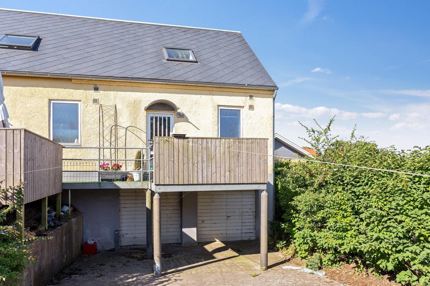 Huset fremstår med pudsede facader og har under den nordlige del 2 garager. Garagerne bruges til depotrum. Ejendommens udenomsareal er bortset fra nogle flisebelagte terrasser primært belagt med grus, der også giver lejerne gode p-muligheder.