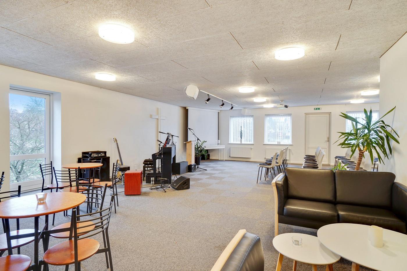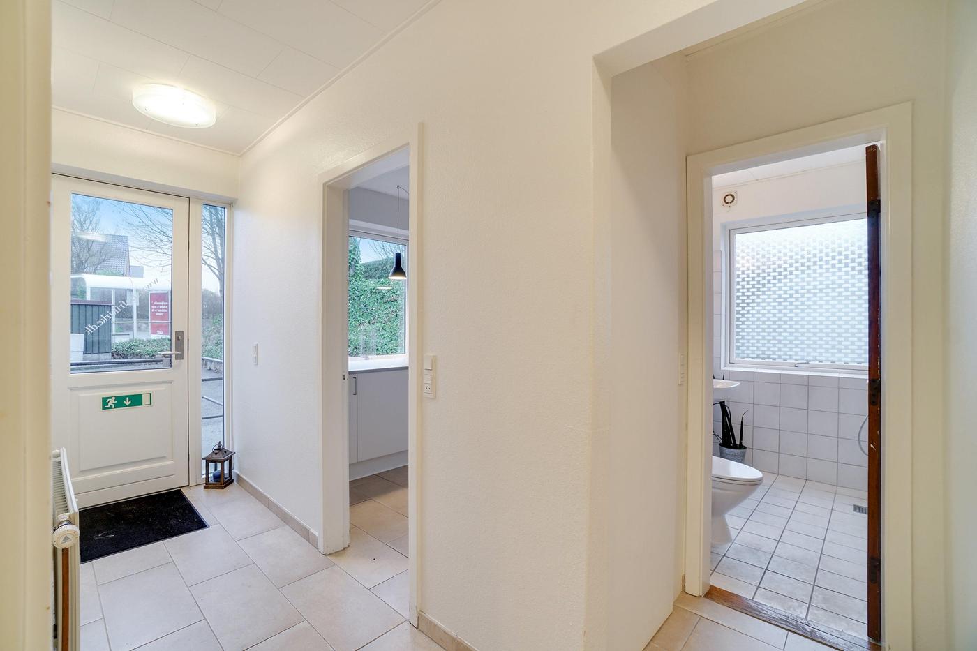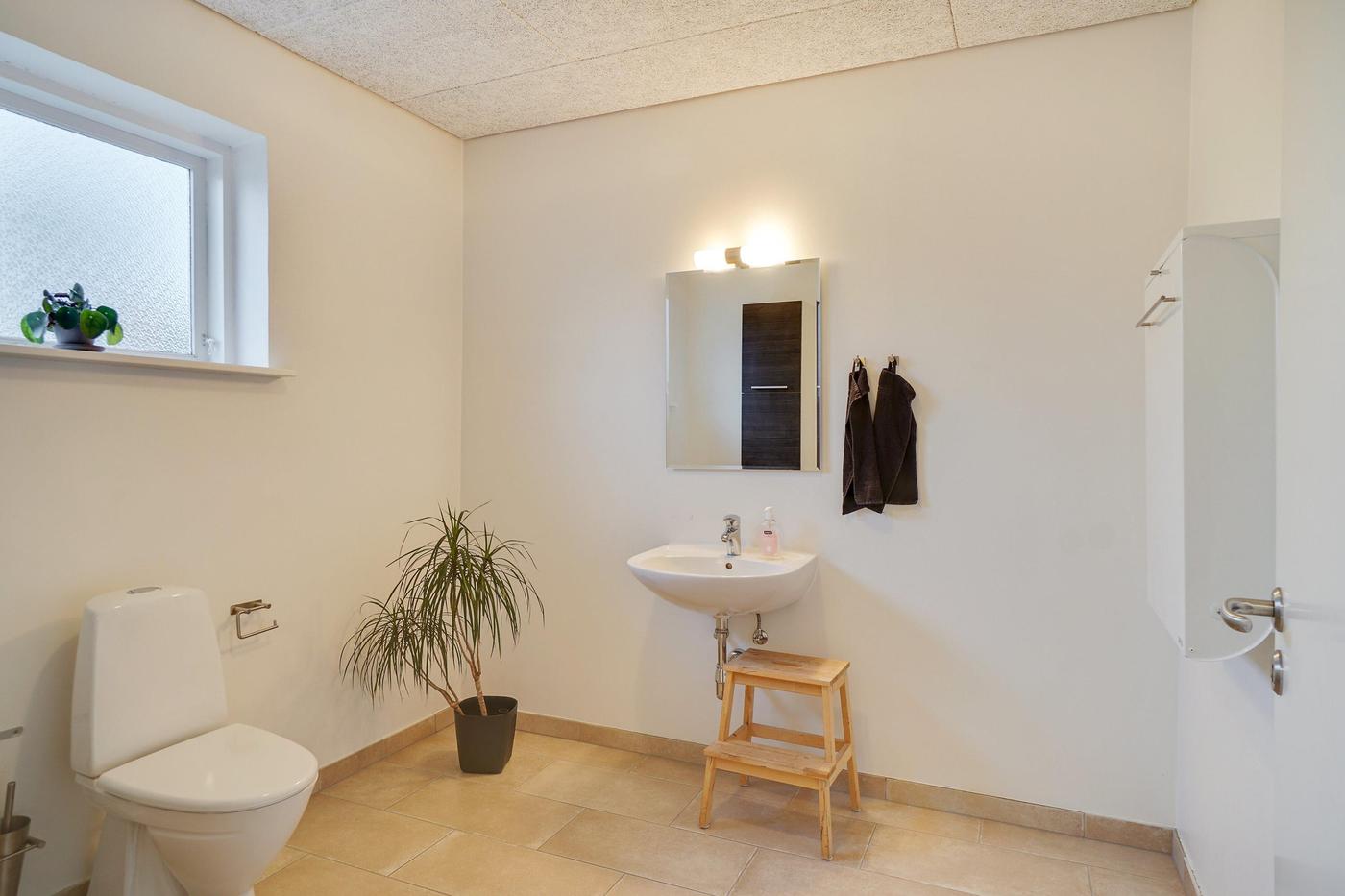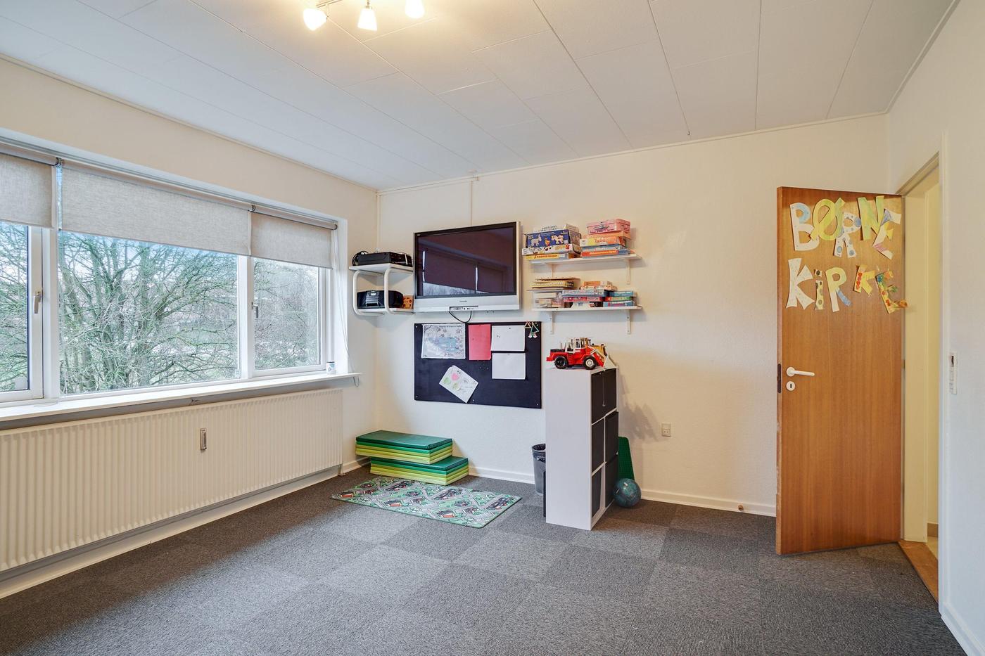Indretningen er med indgang fra asfalteret parkeringsareal til lys entre med handicaptoilet og garderobe, herfra adgang til stor lys sal, som er ideel til foredrag, showroom eller et åbent kontormiljø, fra entreen er der endvidere adgang til den tidligere beboelsesdel, som er med egen indgang, fordelergang, køkken, toilet og to værelser/kontor. Derudover findes der kælder på 40 m², hvor der er adgang til via udvendige trappe