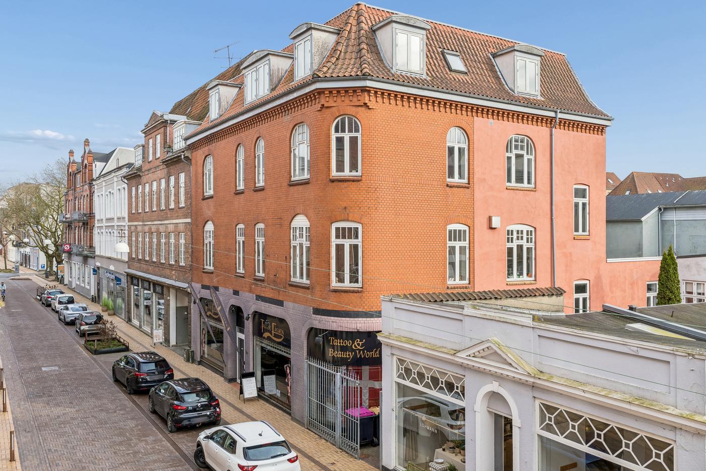 Ejendommen ligger centralt i Haderslev, tæt på byens handelsgader, caféer og offentlige transportmuligheder. Den centrale placering sikrer høj synlighed for erhvervslejemålene og god tilgængelighed for boliglejerne, hvilket styrker både efterspørgsel og stabilitet i udlejningen.