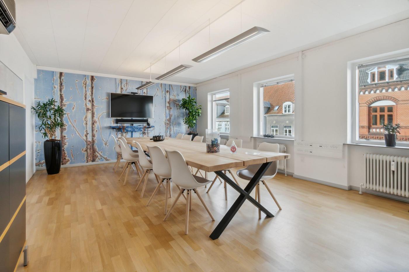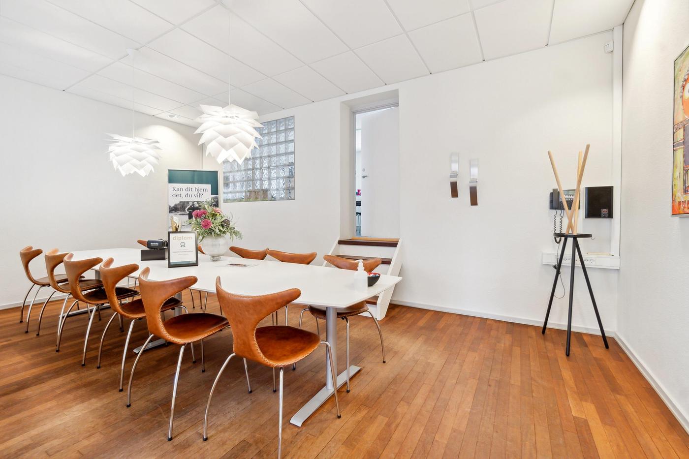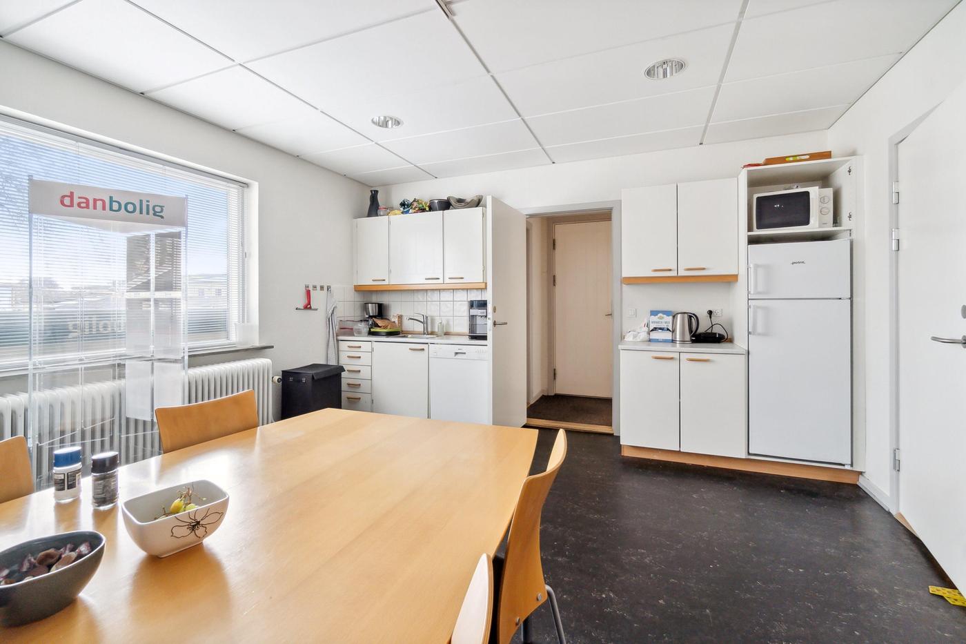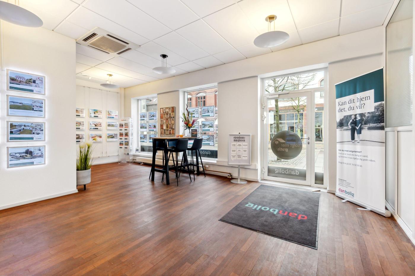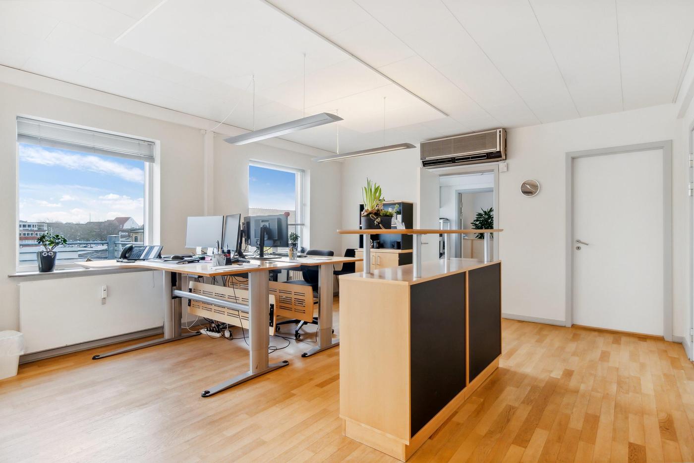 Ejendommen er opdelt i 2 erhvervsenheder, begge enheder er på 269 m² og er i stueplan udlejet til ejendomsmæglerforretning, som har været lejer i ejendommen siden 2015, 1. sal er fri til købers disponering pr. 01.01.2024. Begge lejemål fremstår i pæn stand og med et godt naturligt lysindfald fra både øst og vest. Der er fin kælder på 90 m², hvor der er arkivrum.