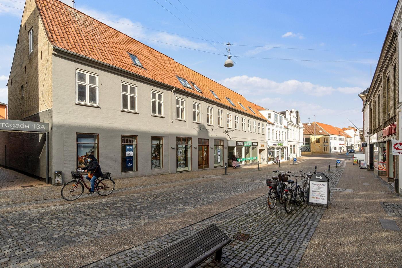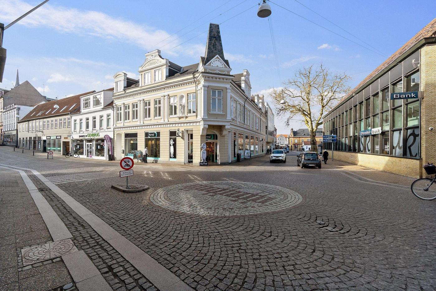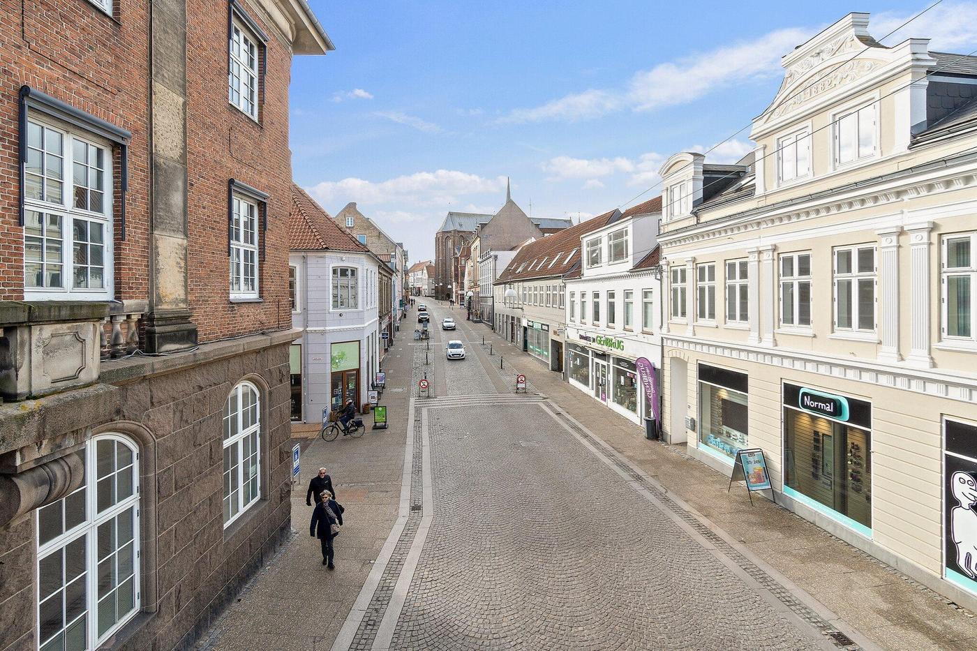 Stort, præsentabelt butikslejemål i historisk ejendom fra 1775 i Haderslev bymidte 100 meter fra domkirken. Lokalerne har hidtil været anvendt af Kreditbanken.