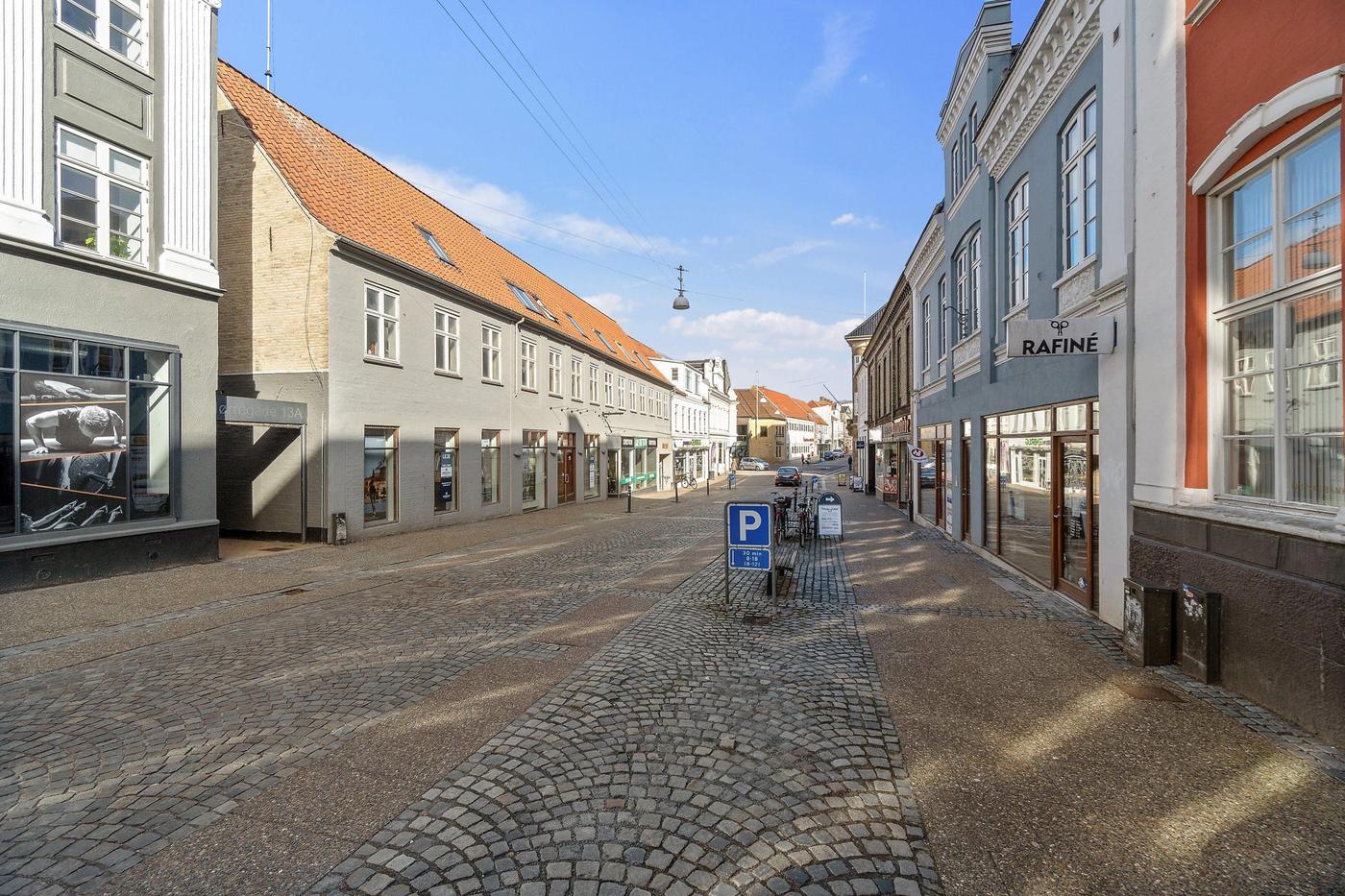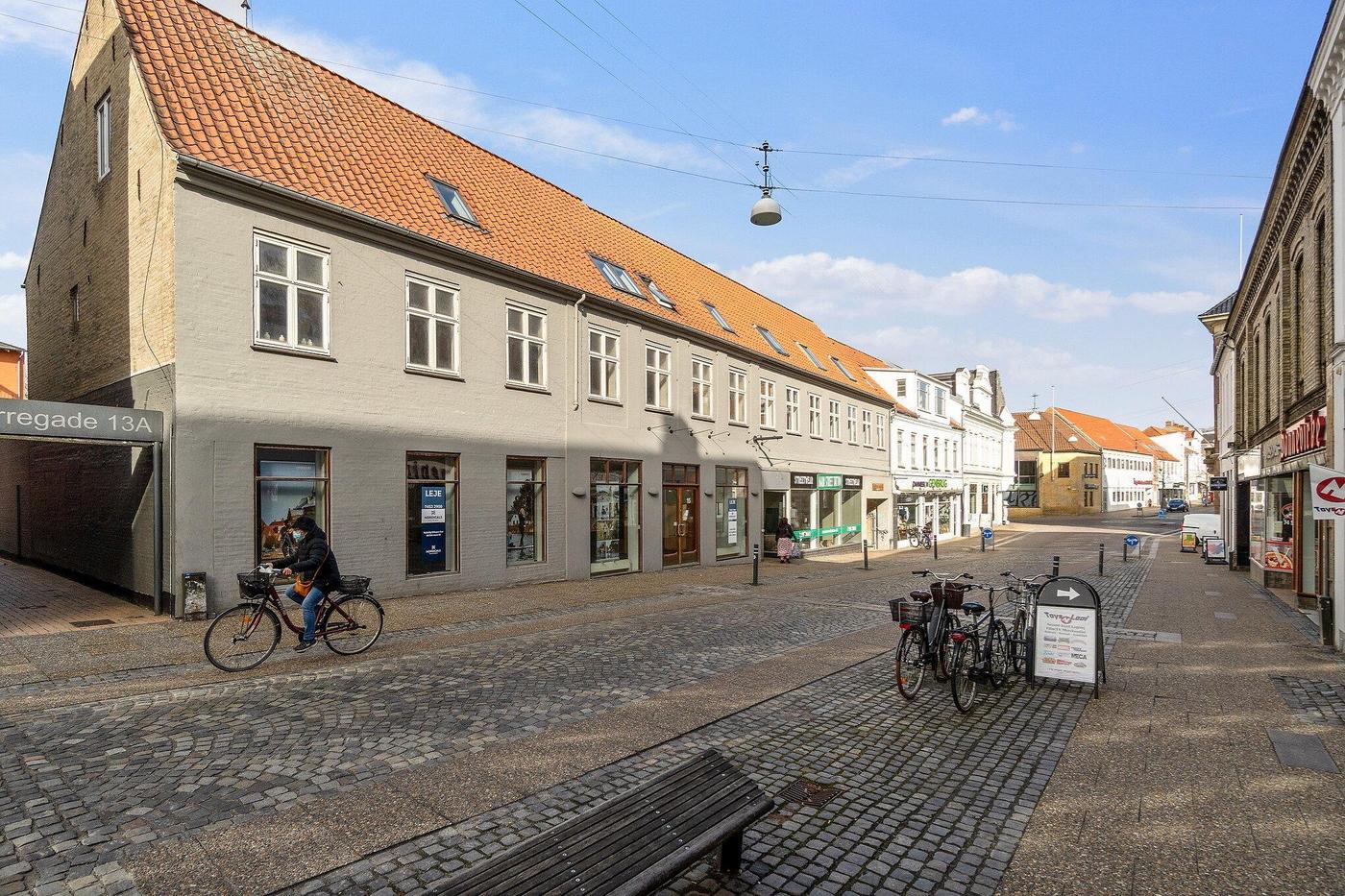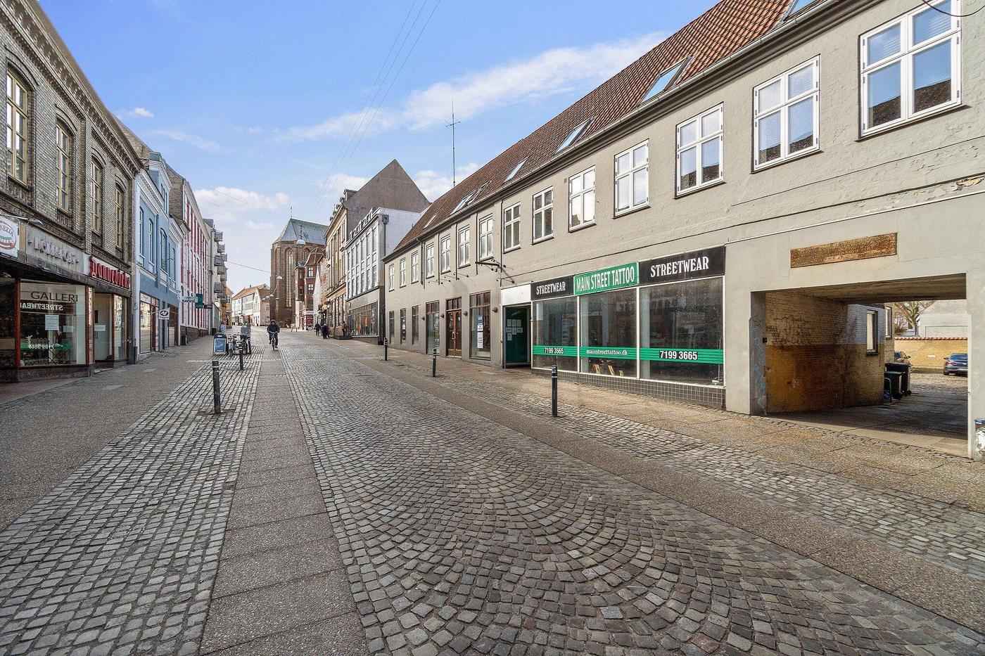 Stort, præsentabelt butikslejemål i historisk ejendom fra 1775 i Haderslev bymidte 100 meter fra domkirken. Lokalerne har hidtil været anvendt af Kreditbanken.