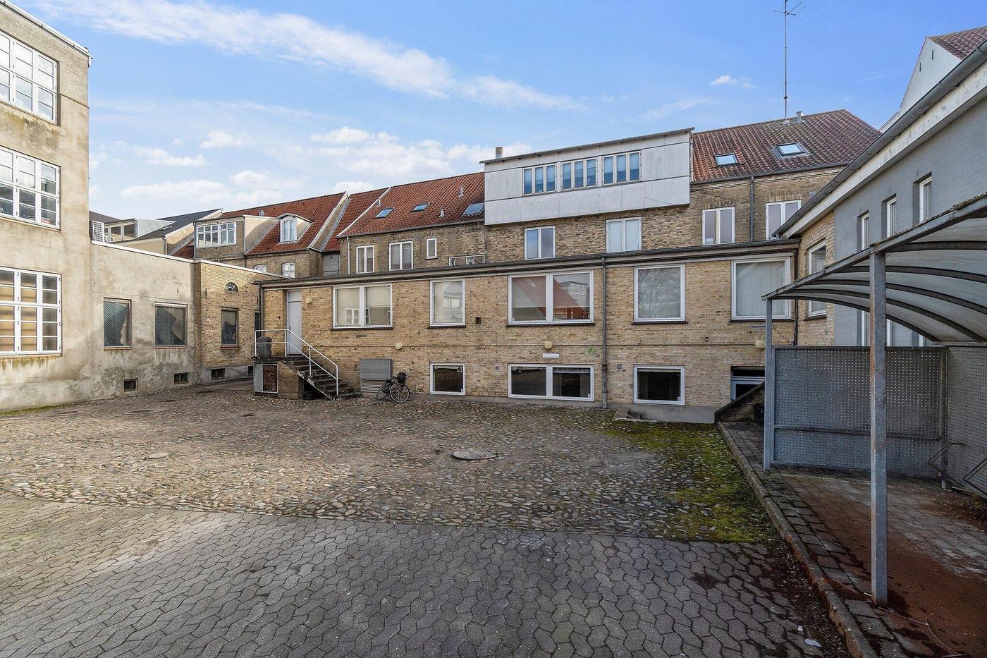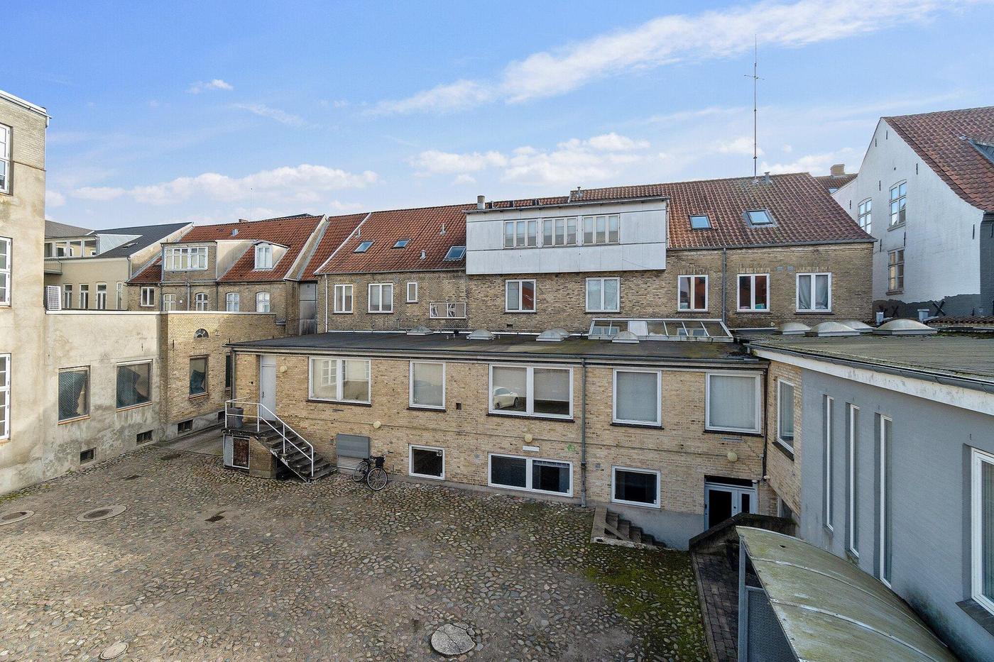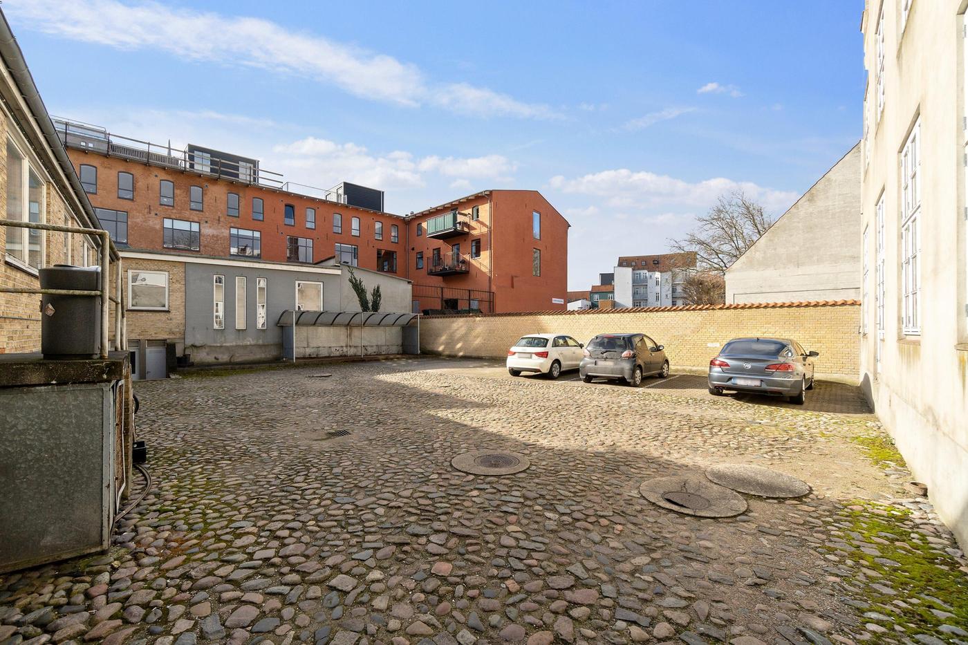 I gården er der indrettet parkeringspladser, størstedelen af disse medfølger lejemålet.