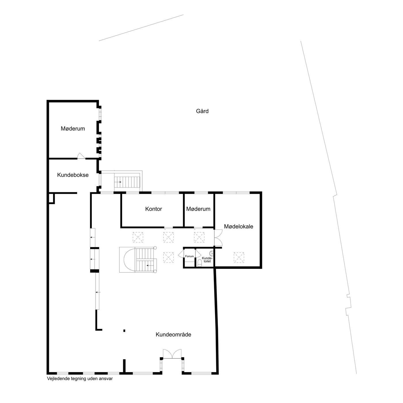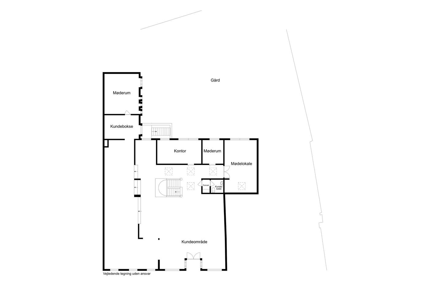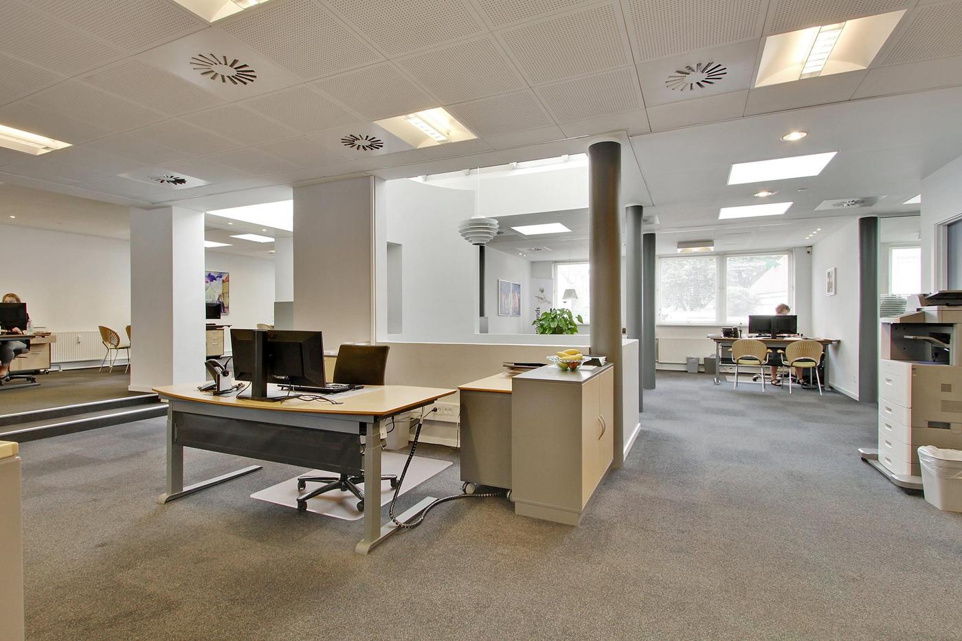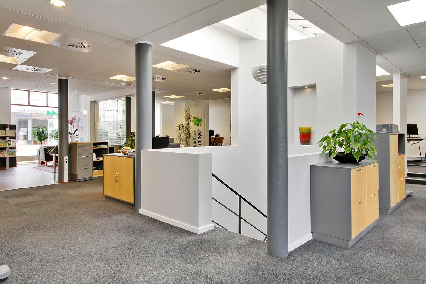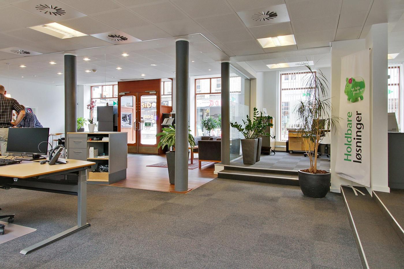 Med sin søjlebåret konstruktion har lejemålet meget fleksible indretningsmuligheder både som stort butikslokale, hvor nuværende vægge ryddes eller det kan skræddersys til klinik, liberale erhverv, resturation mv.