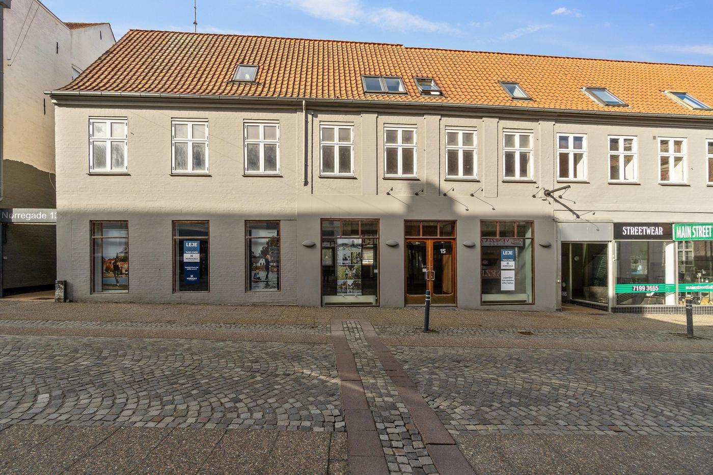 Lejemålet består af 368 m² areal i stueetagen med bred facade mod Nørregade. Der er ventilation og toiletfaciliteter i stueetagen og lokalet fremtræder lyst med ovenlysvinduer og facadevinduer både til gården og til Nørregade. Derudover omfatter lejemålet 308 m² parterre/underetage, som er forbundet med stueetagen via intern trappe. Underetagen er meget anvendelig til lager, showroom, møderum og personalefaciliteter. Etagen indeholder tillige køkken og bad. Der er direkte indgang fra gården.
