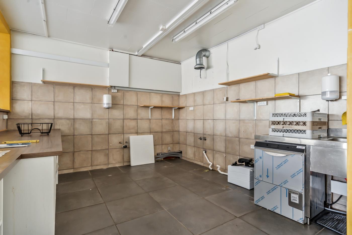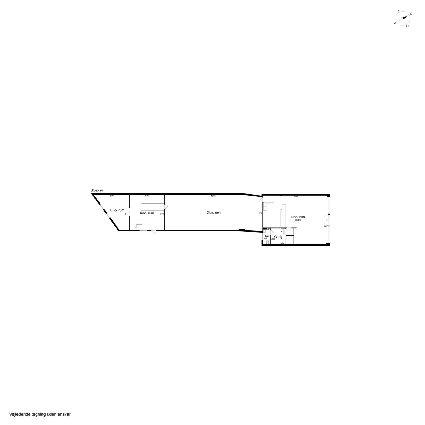 Lokalet er på 119 m² og er i dag indrettet med køkken til café og et stort forrum til udstilling, siddepladser eller lignende.