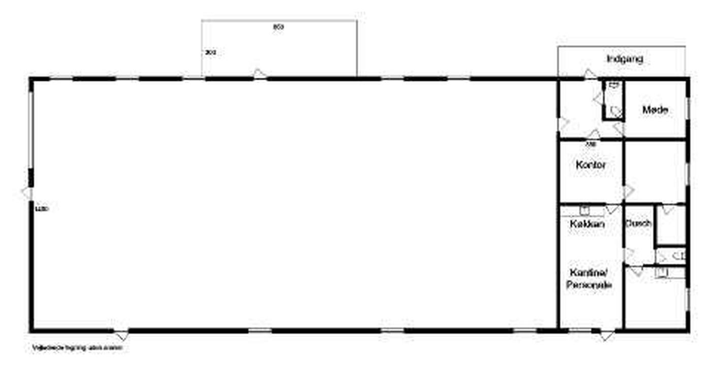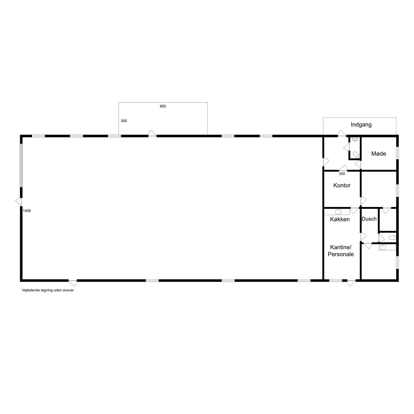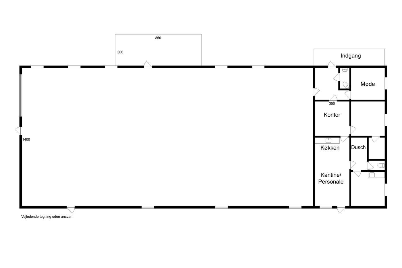Indretningen er med indgang til entre med toilet og adgang til mødelokale, derudover er der kontorlokaler og personalefaciliteter i form af frokostrum med thekøkken og omklædningsrum med bruser. Derudover er der et regulært produktionslokale med god loftshøjde.