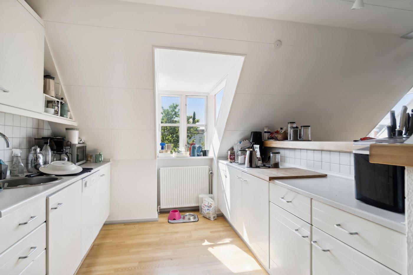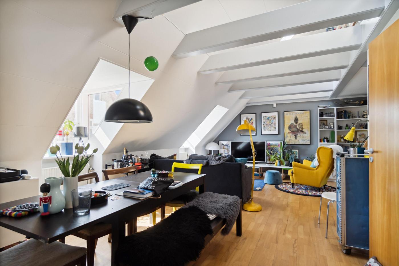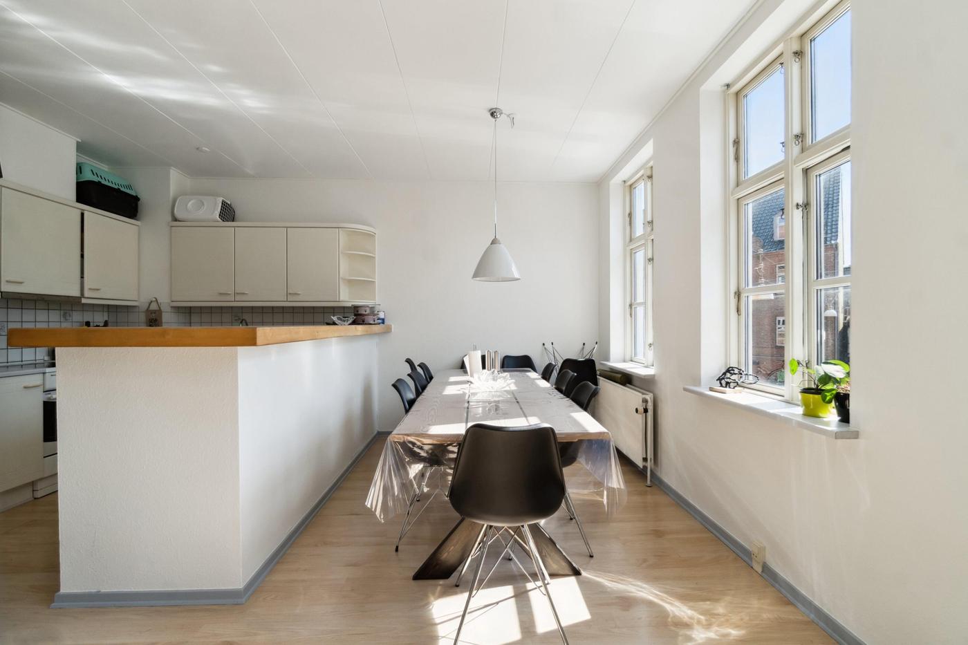 Boligerne på henholdsvis 111 m² og 112 m² er begge udlejet, begge lejligheder fremstår i meget flot stand, rigtig godt udnyttet og med skønne opholdsrum ud mod gågaden, hvor der fra facadevinduerne kommer et fantastisk lys ind. Lejligheden på 2. sal er med hems og synlige bjælker.
