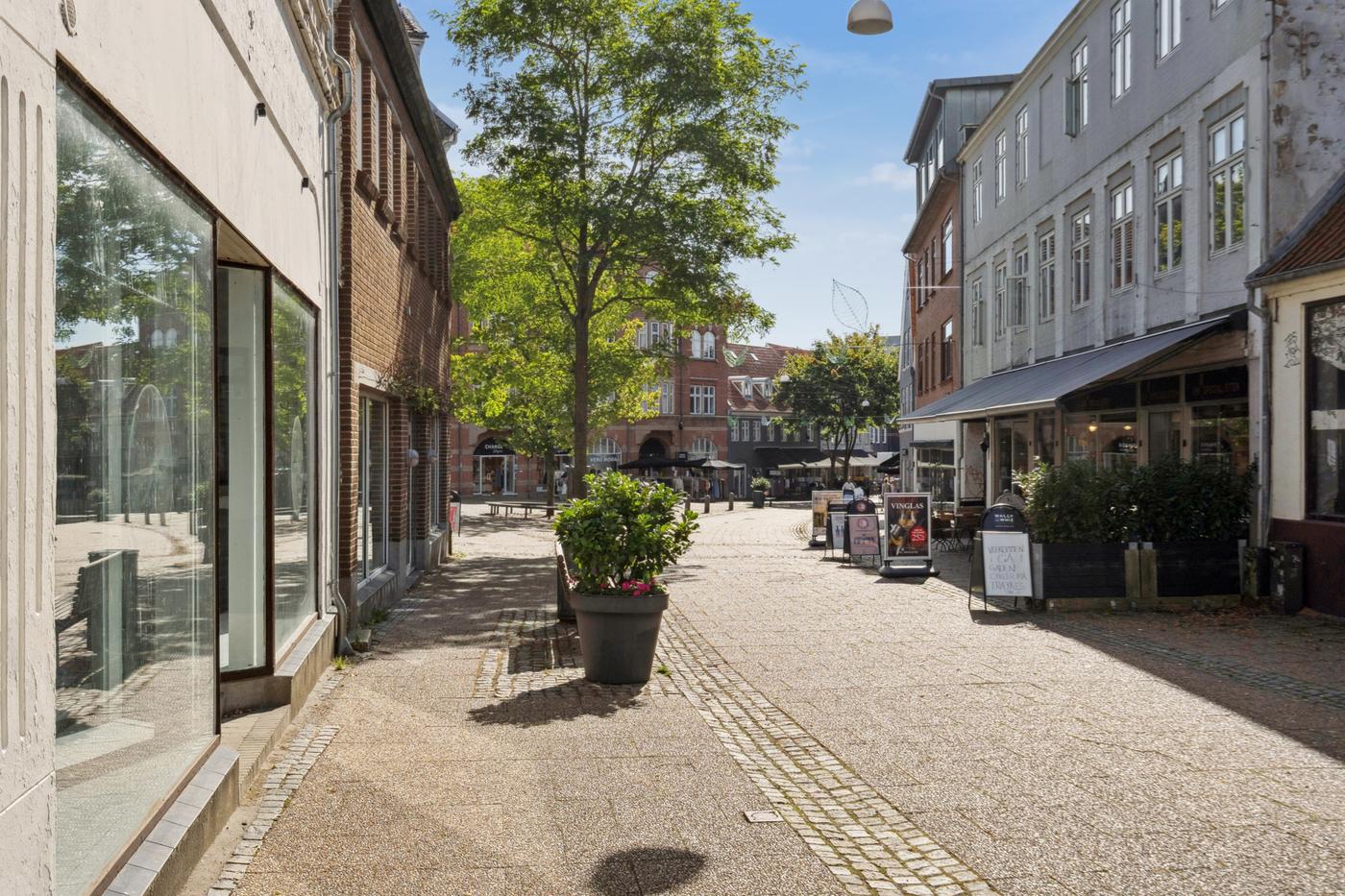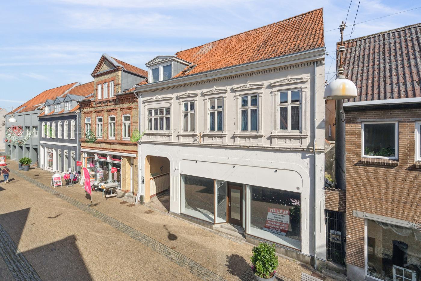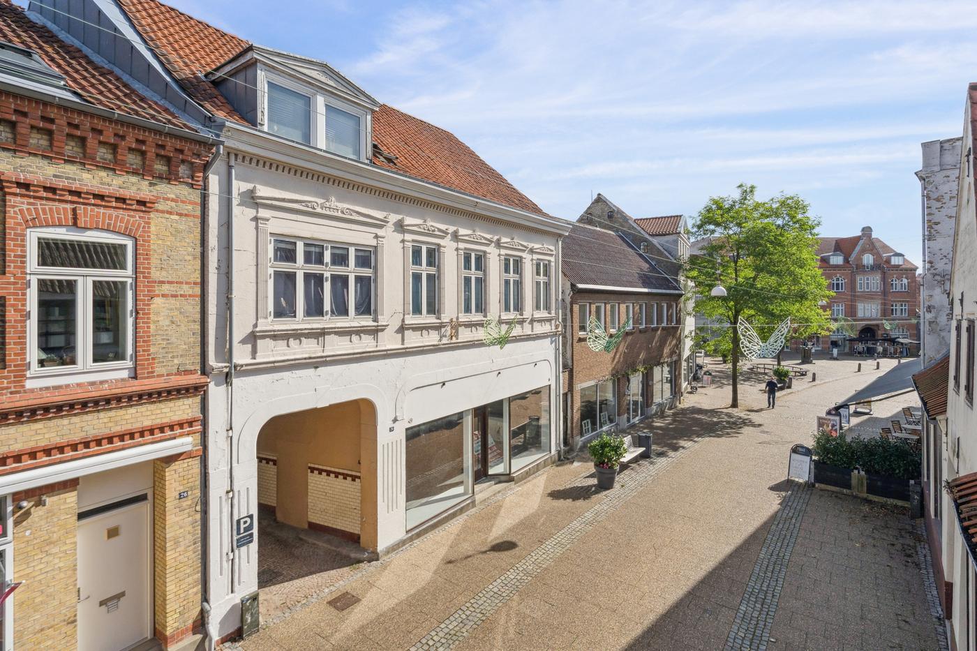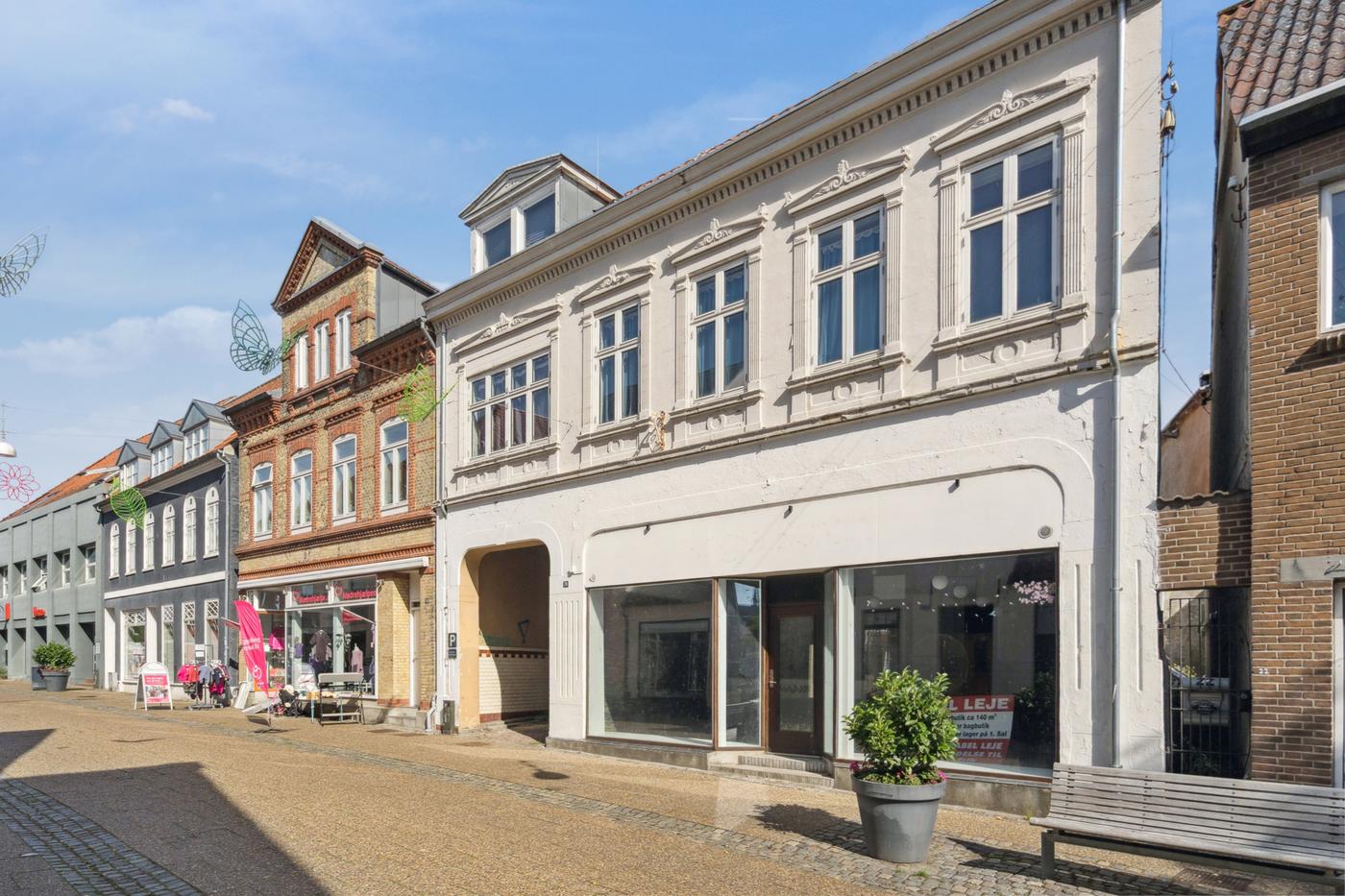 Midt på gågaden i Haderslev udbydes denne flotte og centralt beliggende ejendom med både bolig- og erhvervslejemål. Ejendommen rummer i alt fire boliglejemål på hhv. 45 m², 98 m², 76 m² og 80 m², hvilket giver en god og stabil lejeindtægt.